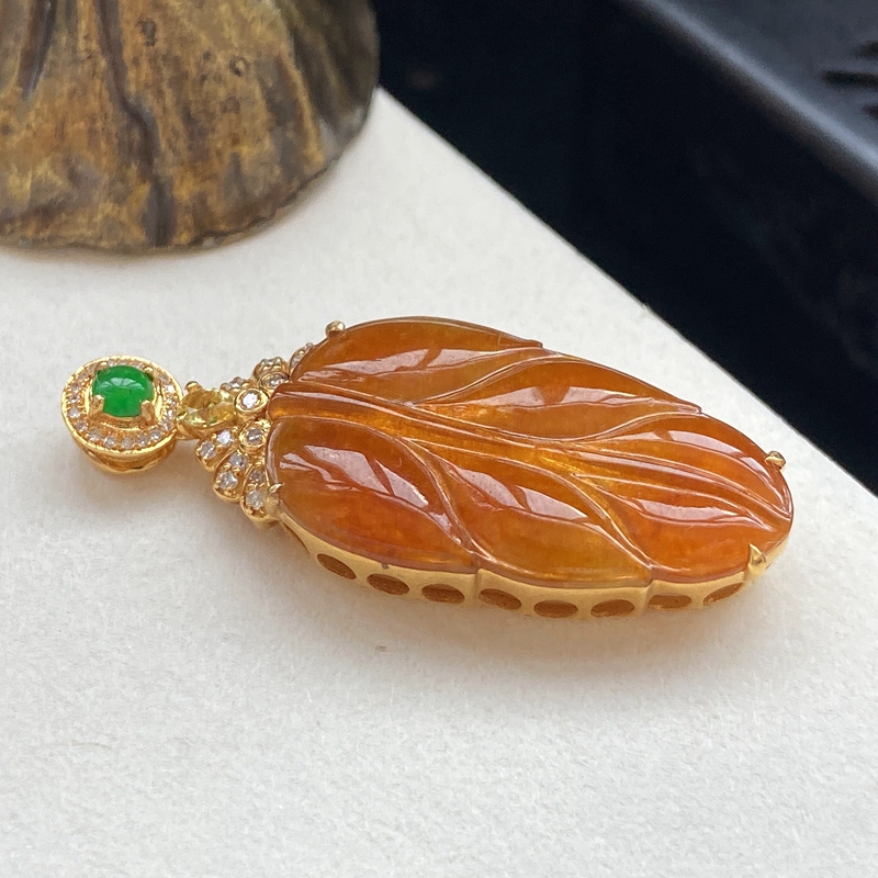 • [名  称] 18K冰种黄翡金枝玉叶吊坠