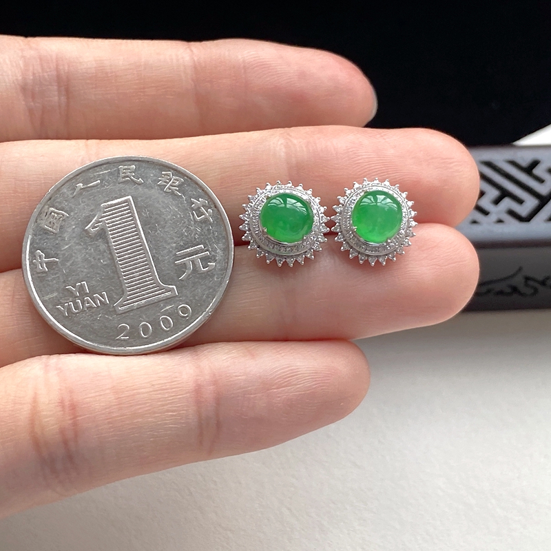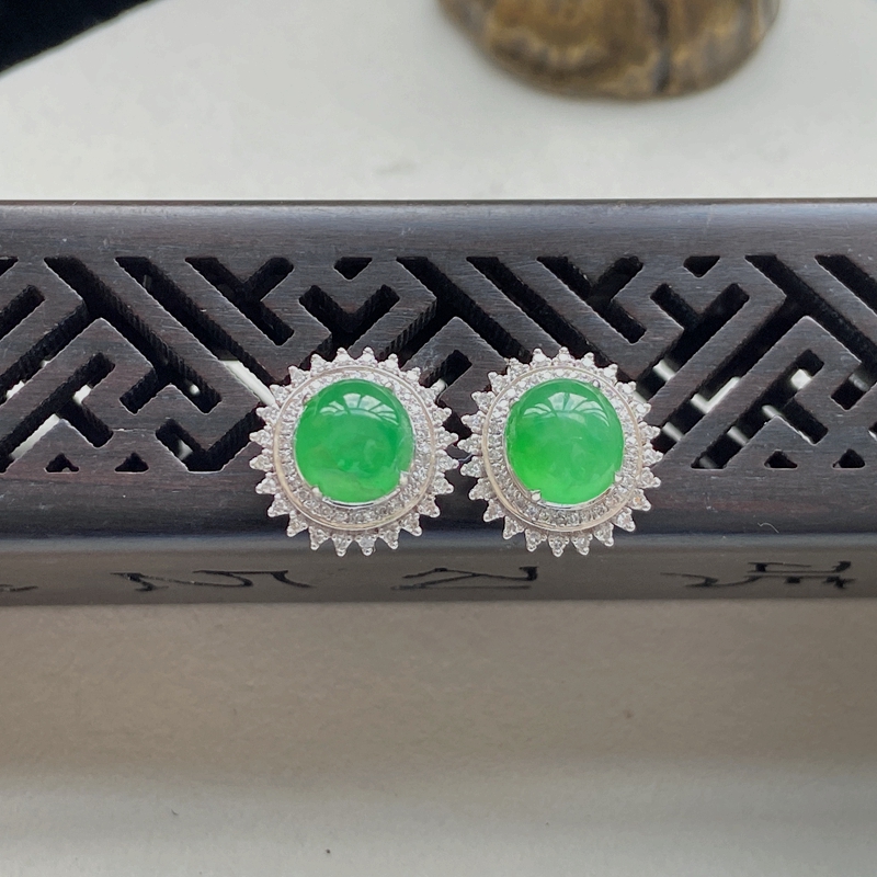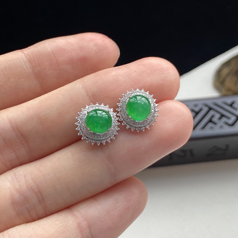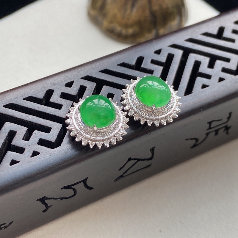 • [名  称] 18K冰种浅绿翡翠耳钉
