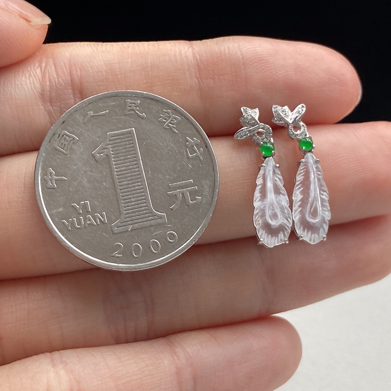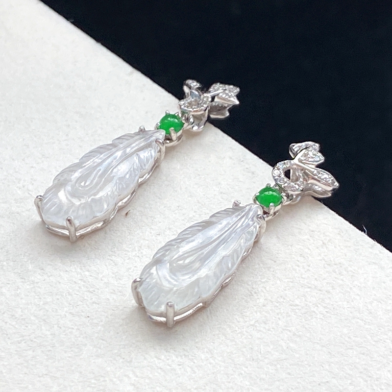 • 18K冰种翡翠羽毛耳坠
