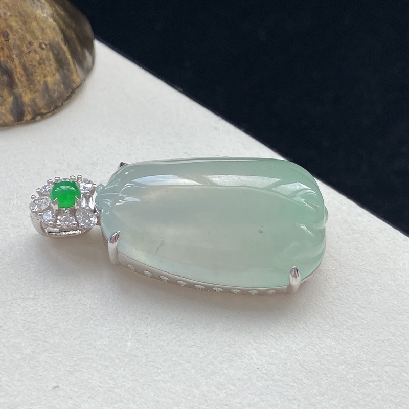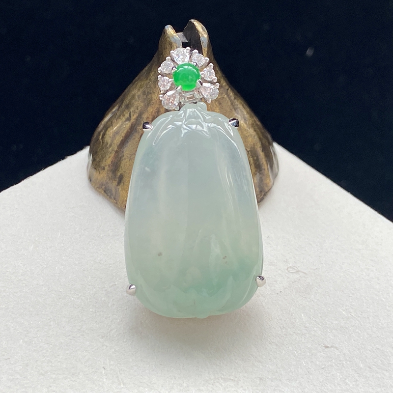 • [名  称] 18K冰种淡绿翡翠福瓜吊坠
