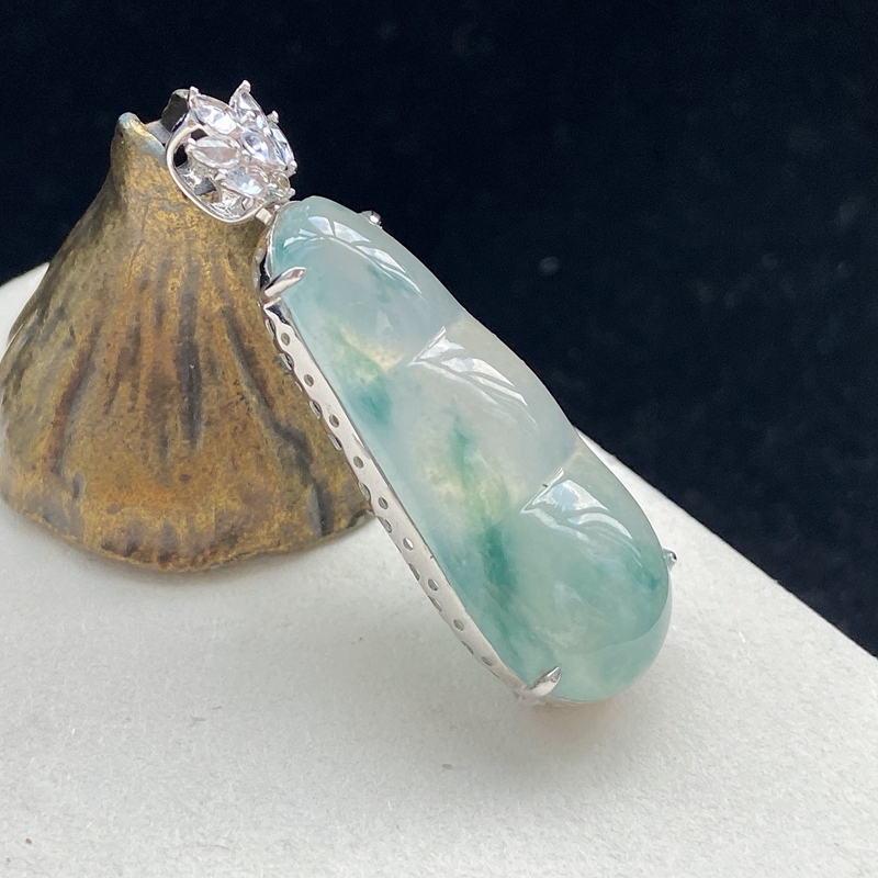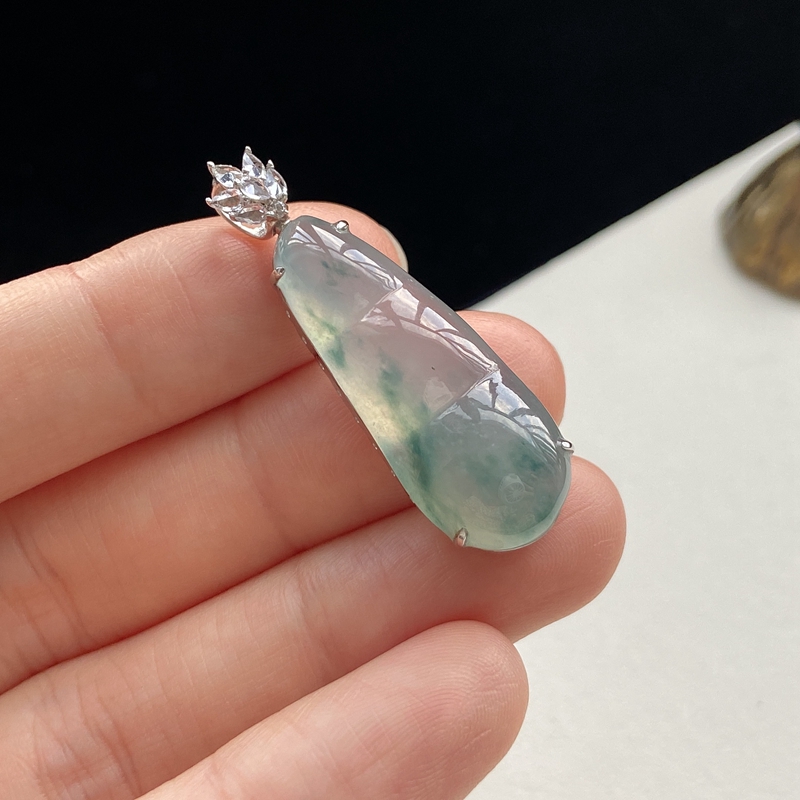 • [名  称] 18K冰种飘花翡翠福豆吊坠