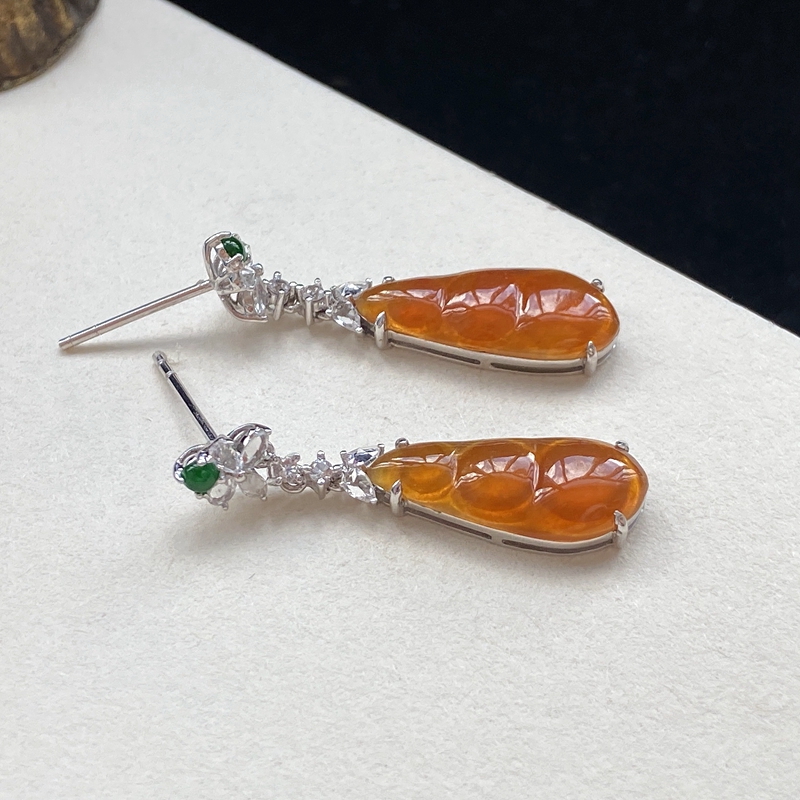 • [名  称] 18K冰种黄翡翡翠福豆耳钉