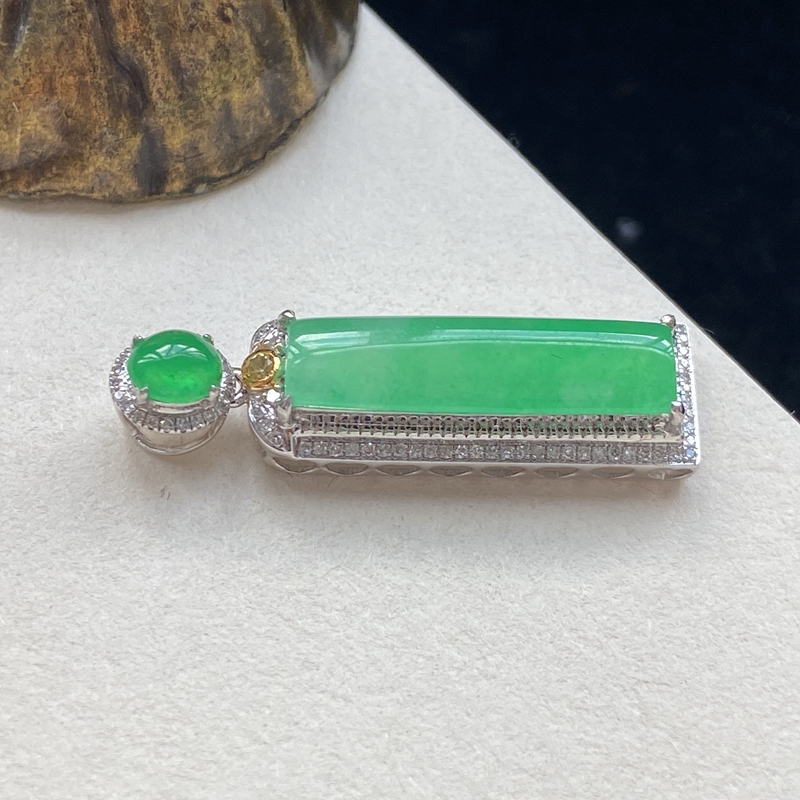 • [名  称] 18K冰种阳绿翡翠平安无事吊坠