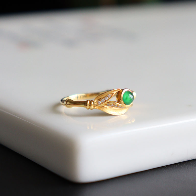 • [名  称] 18k冰种翠绿翡翠节节高戒指