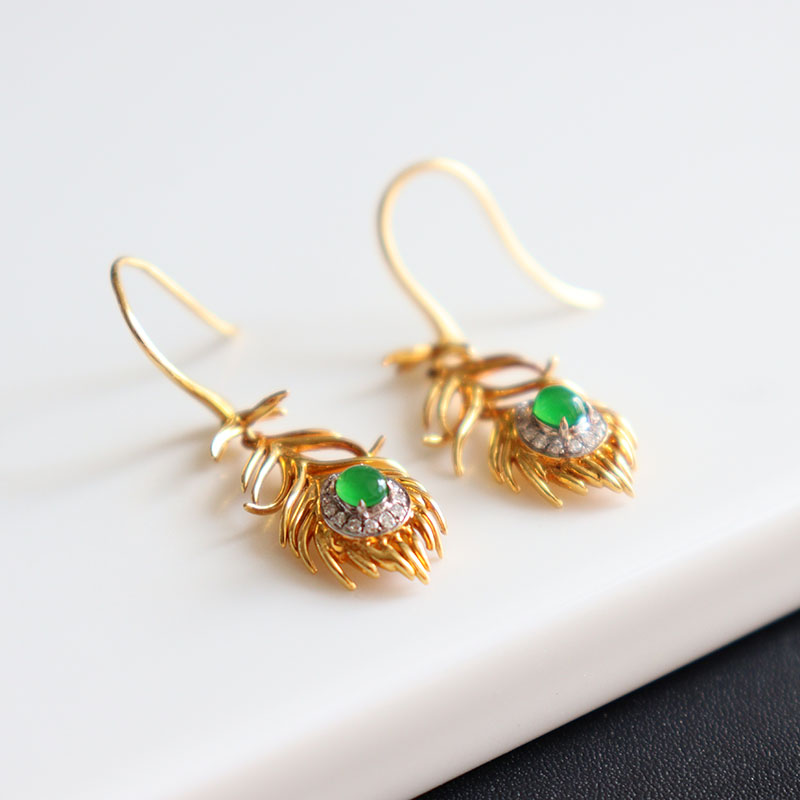 • [名  称] 18k冰种翠绿翡翠羽毛耳坠