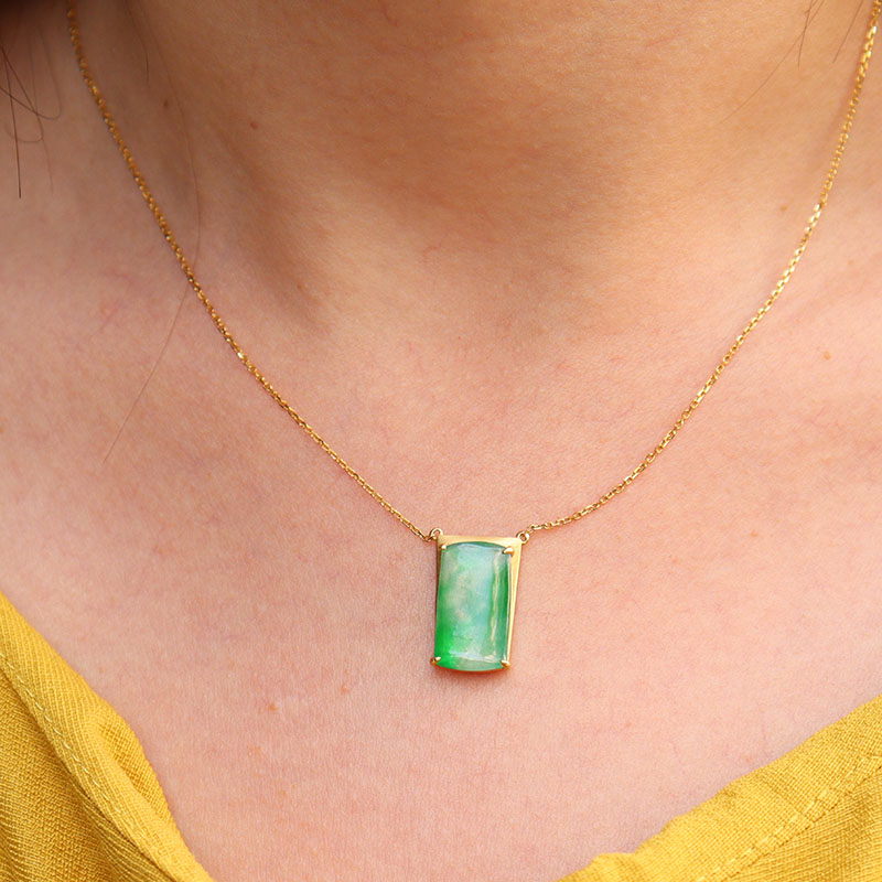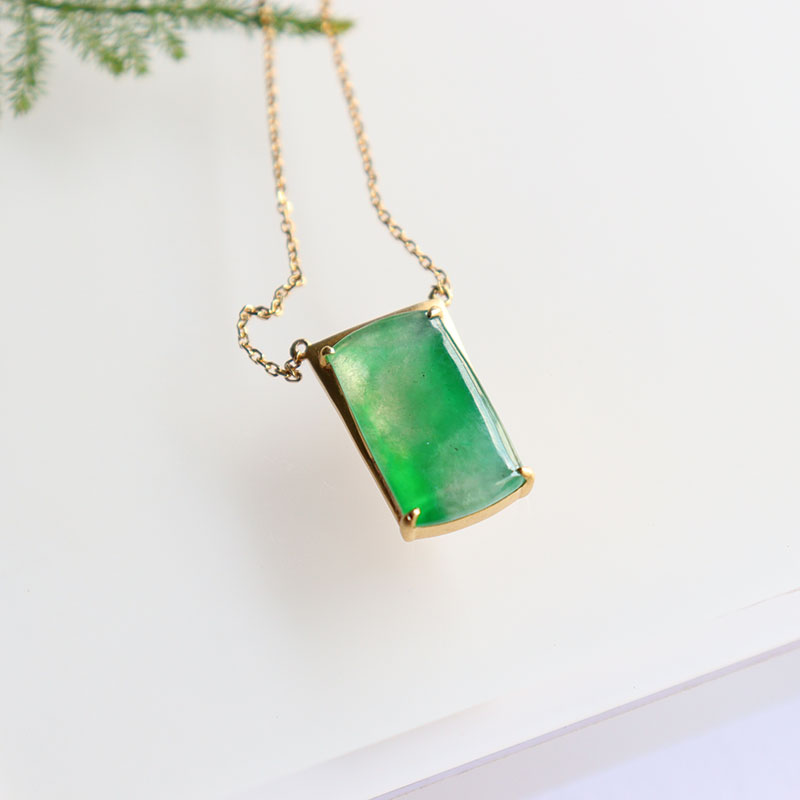 • 18k冰种翠绿翡翠无事牌项链