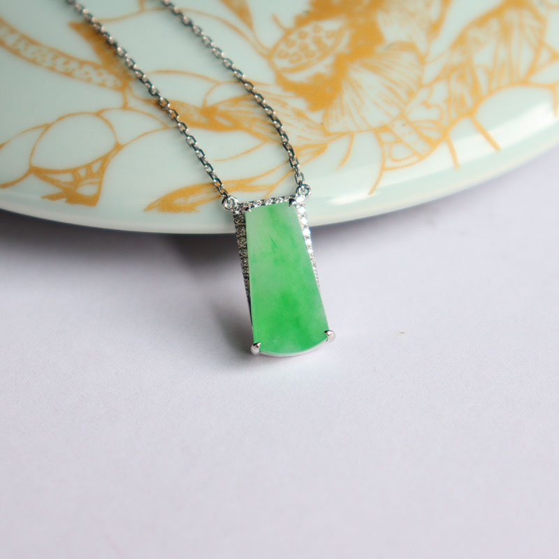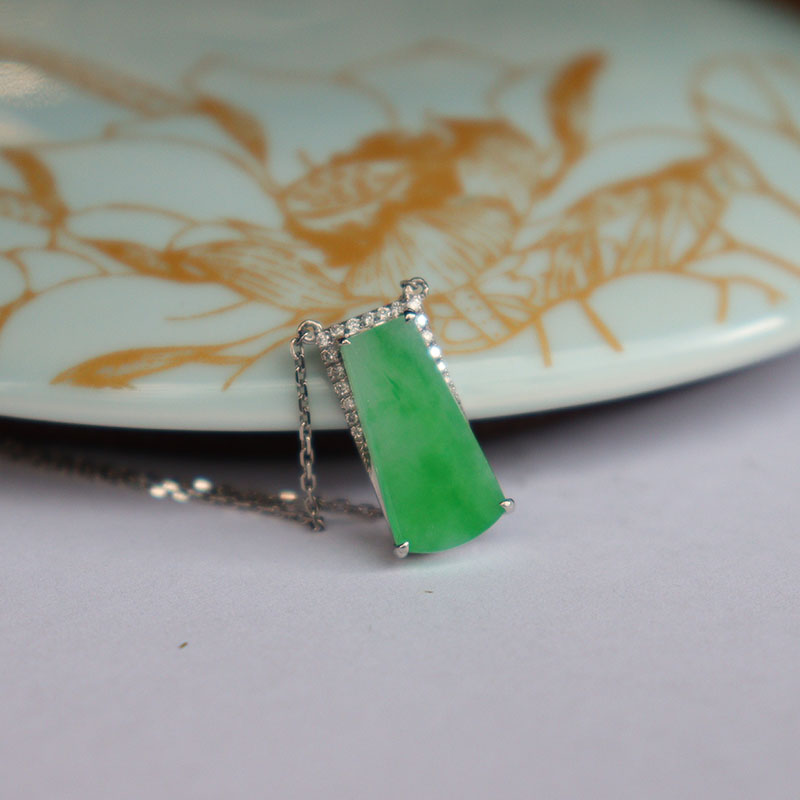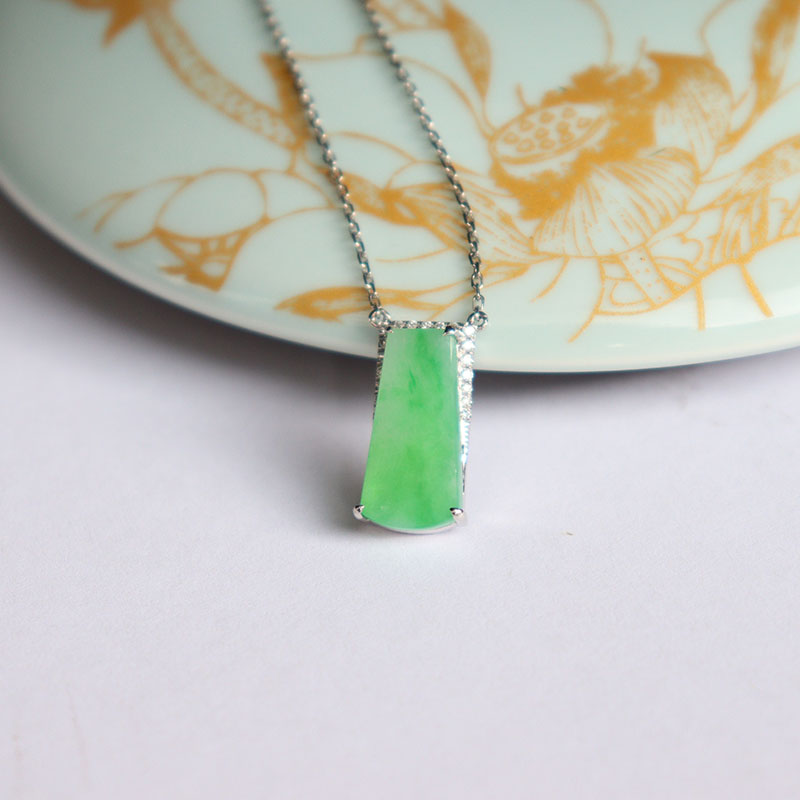 • [名  称] 18k冰种飘翠翡翠无事牌项链