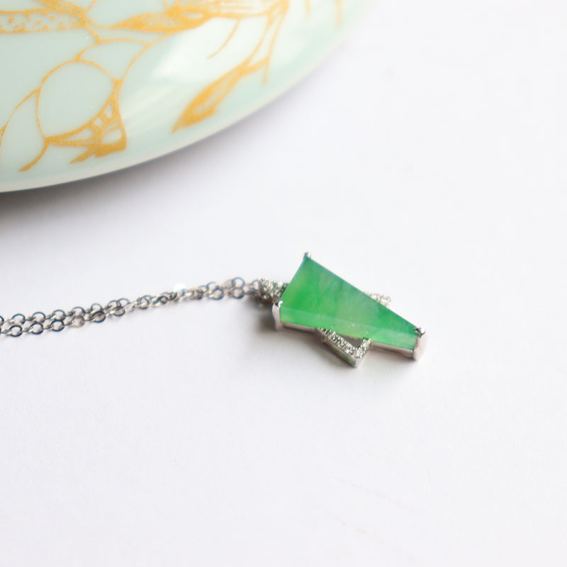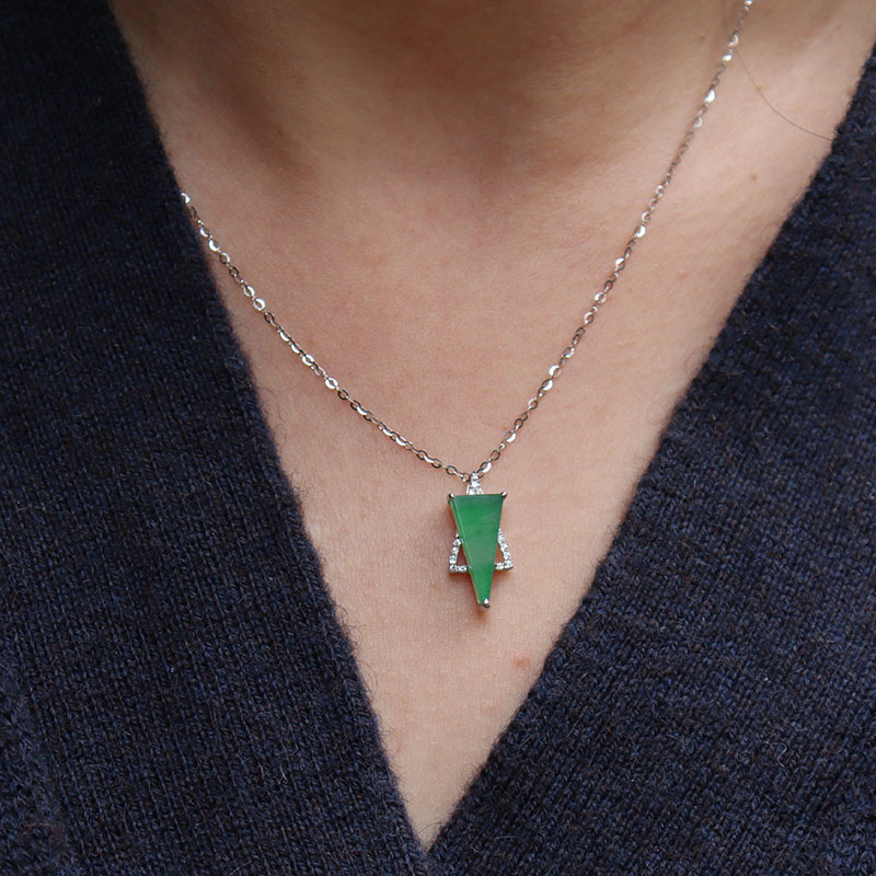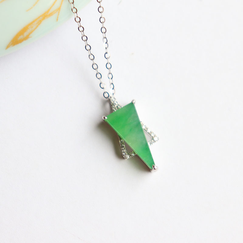 • [名  称] 18k冰种飘翠翡翠无事牌项链