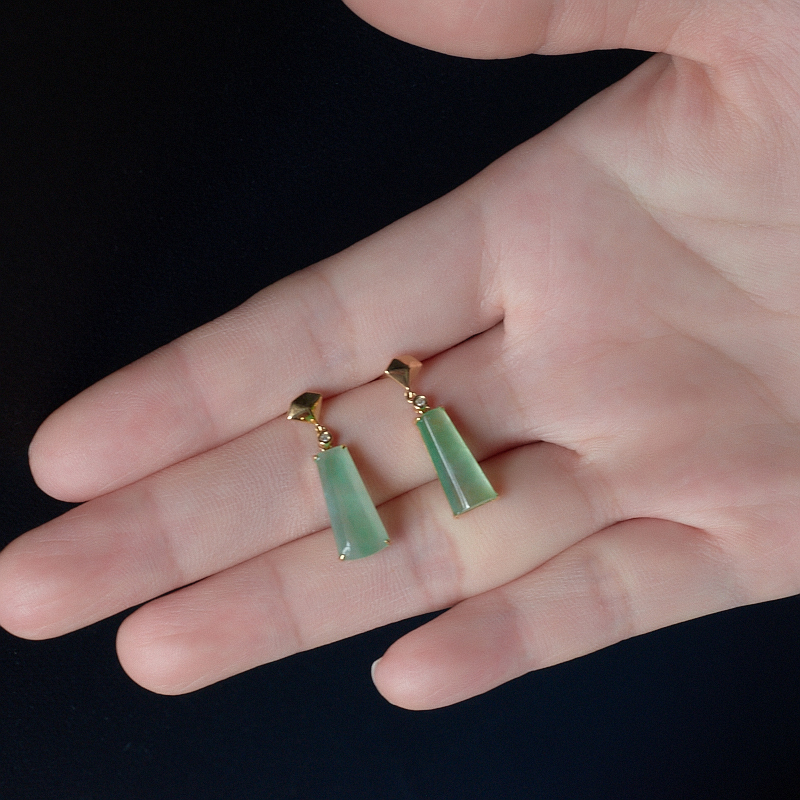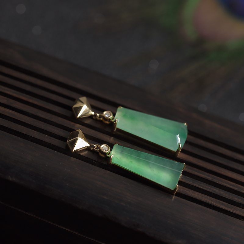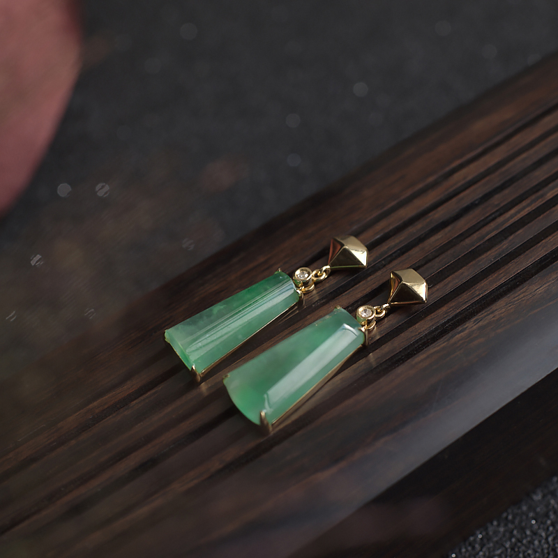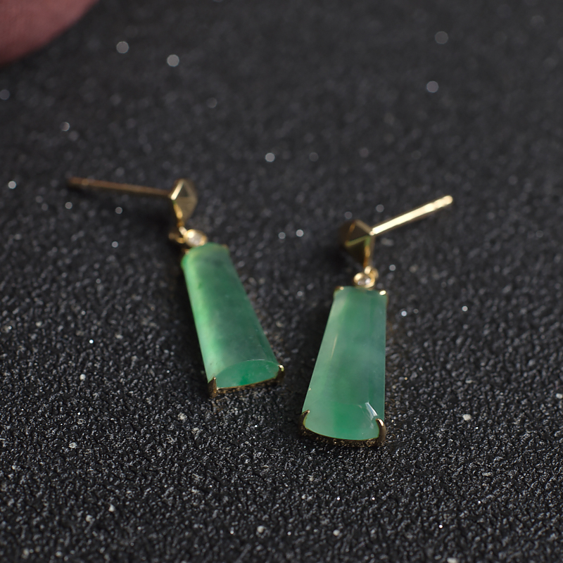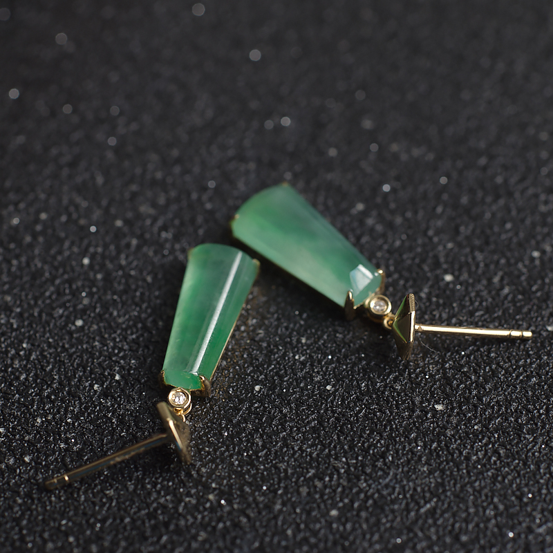 • 18K冰种浅绿翡翠耳坠