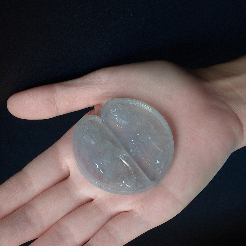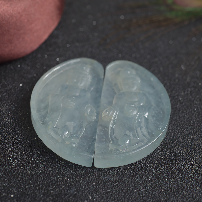 • 冰种淡晴水翡翠佛吊坠(两件)