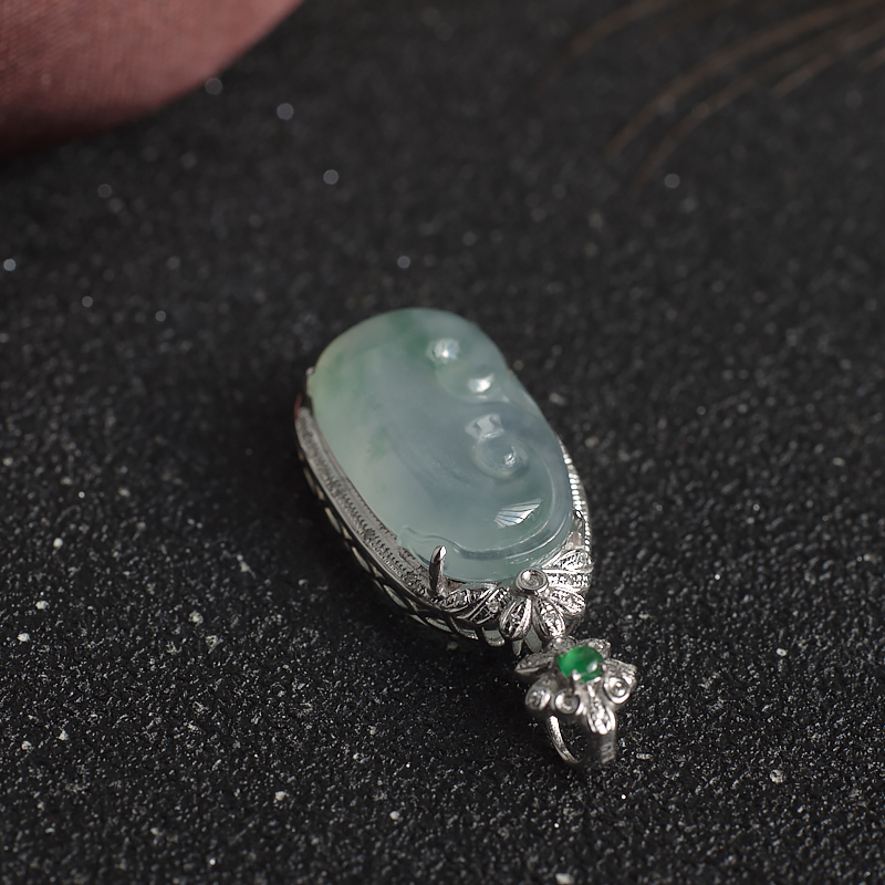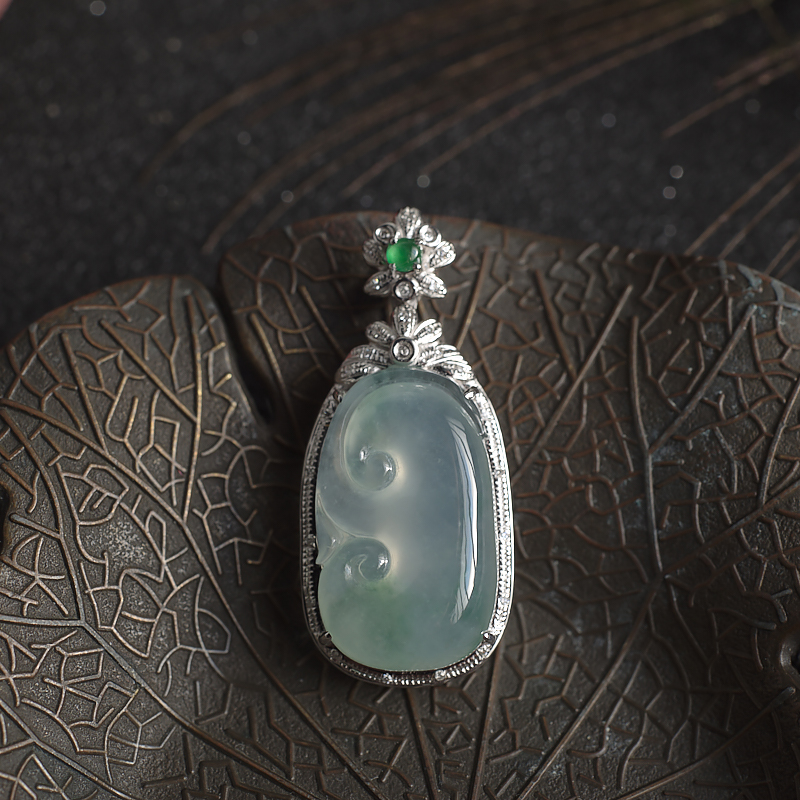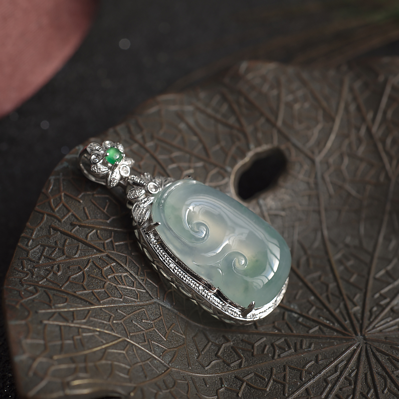 • 18K冰种飘花翡翠如意吊坠