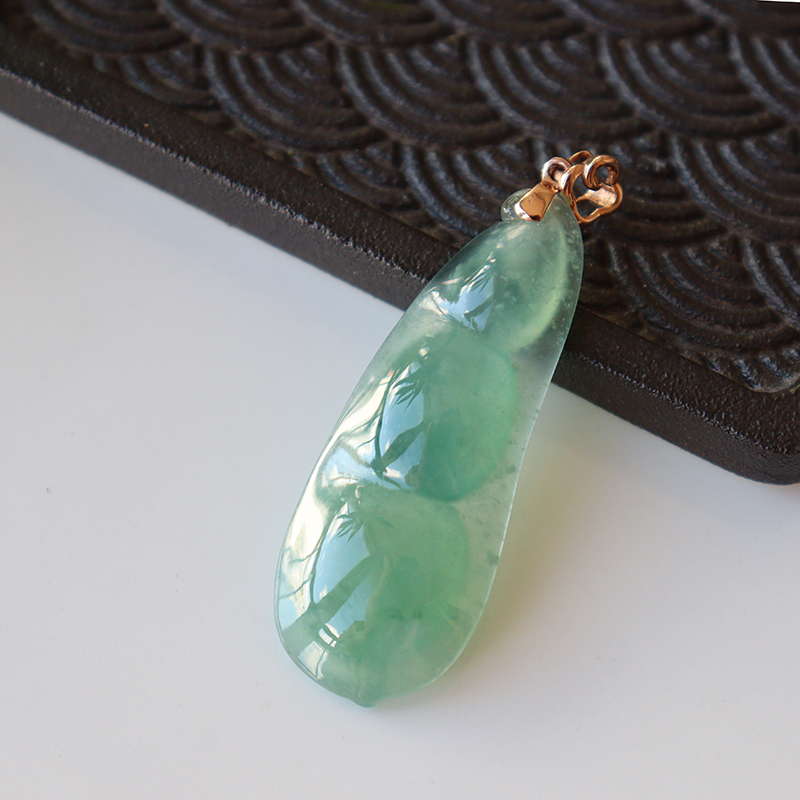 • 18k冰种蓝绿翡翠连中三元吊坠