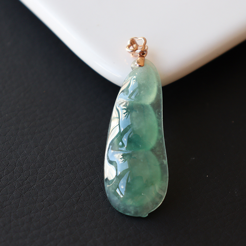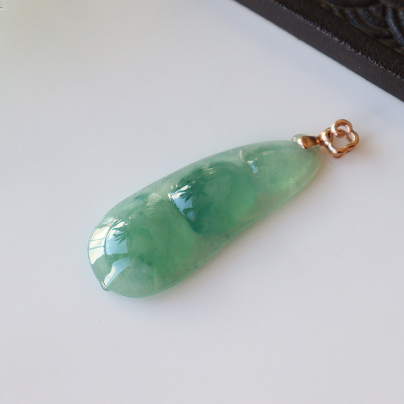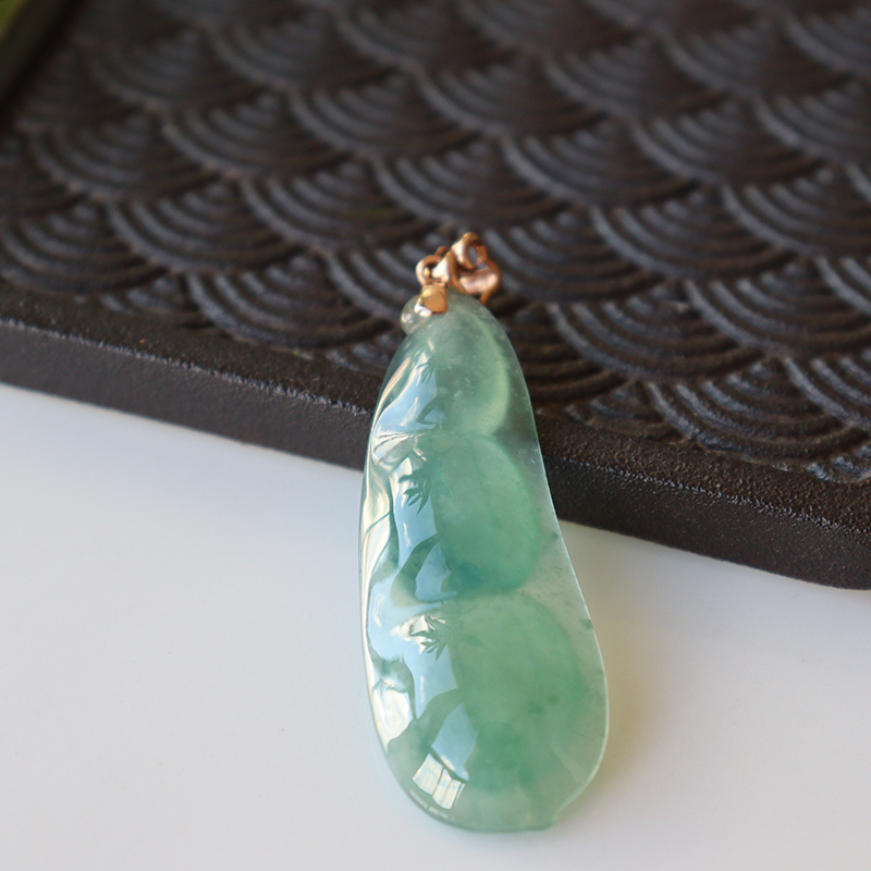 • [名  称] 18k冰种蓝绿翡翠连中三元吊坠