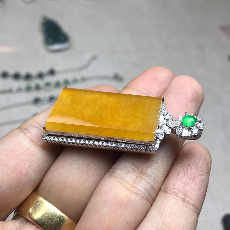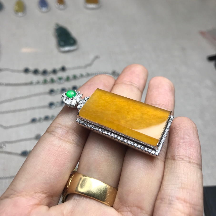 • [名  称] 18K冰种黄翡无事牌吊坠