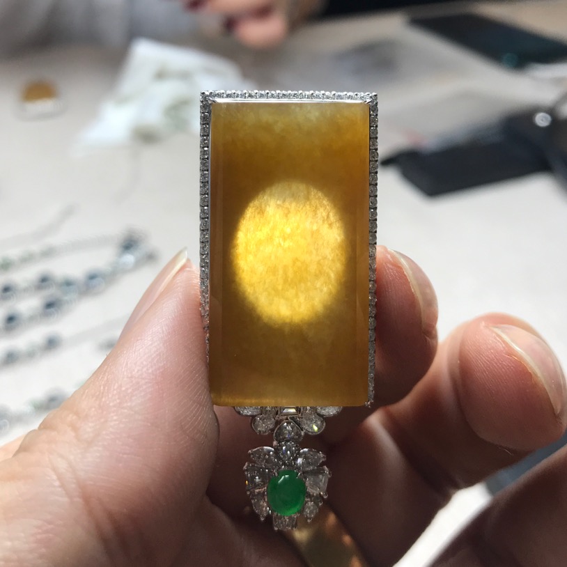 为了让珠宝的价值得到更大程度的体现,每一个作品都是根据料子本身做专业的设计,让每件作品都有灵魂。设计好以后会根据设计创意做专业的镶嵌或雕刻,确保每个接口都严丝合缝,每一刀都流畅自如