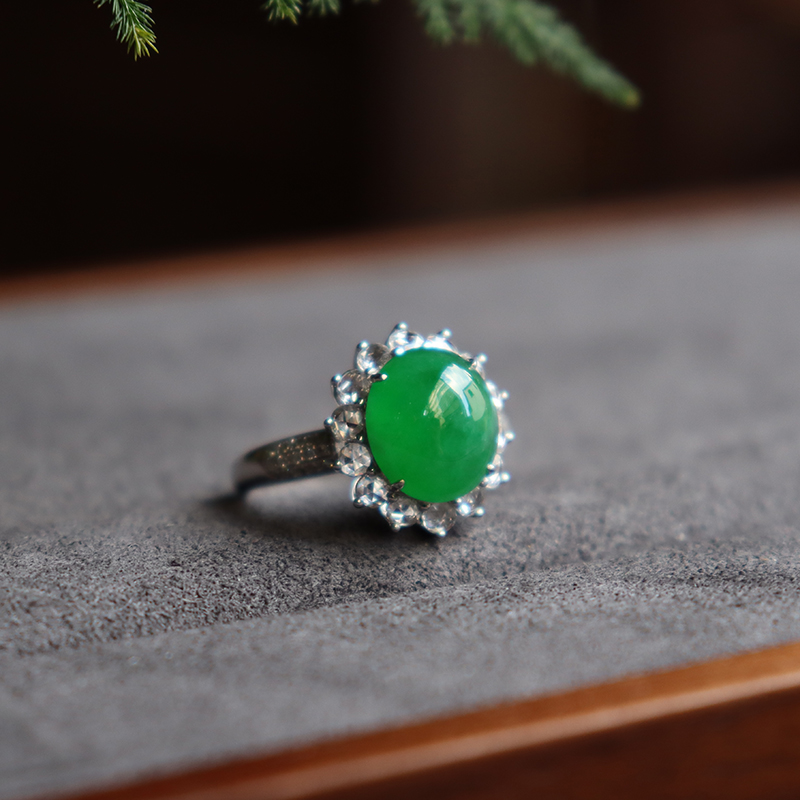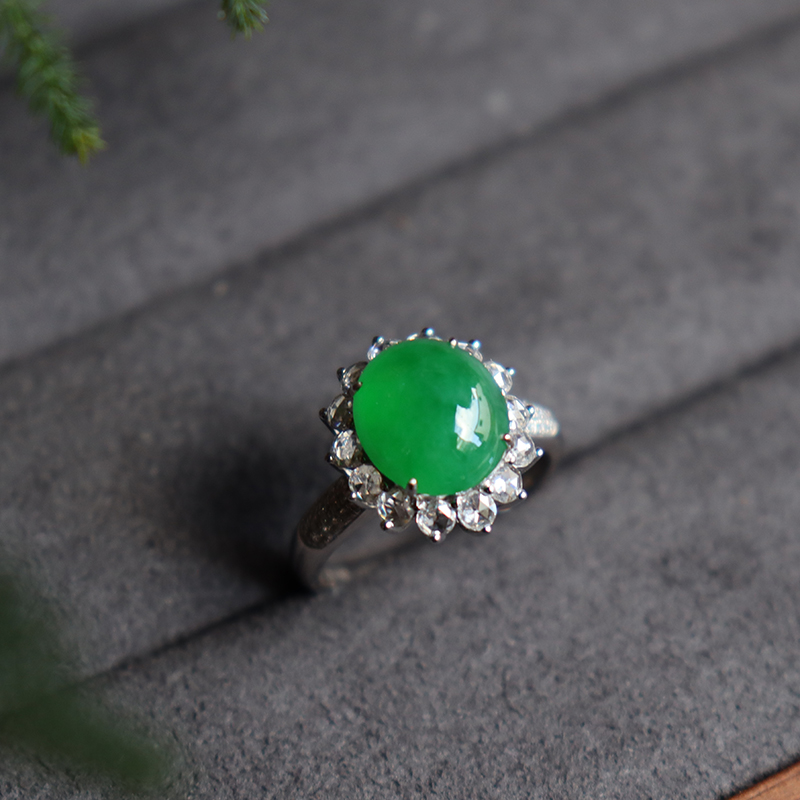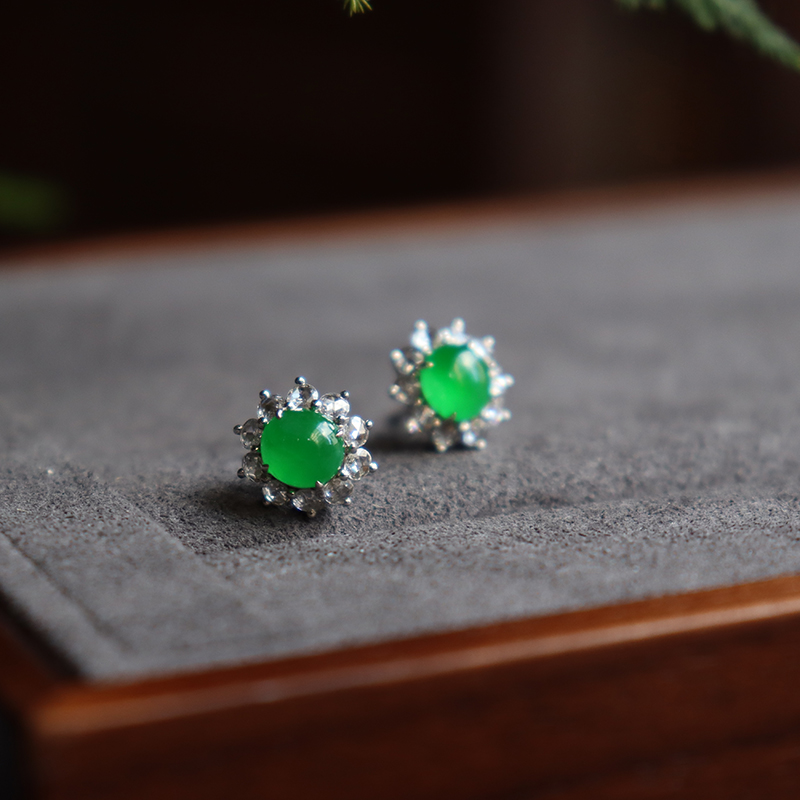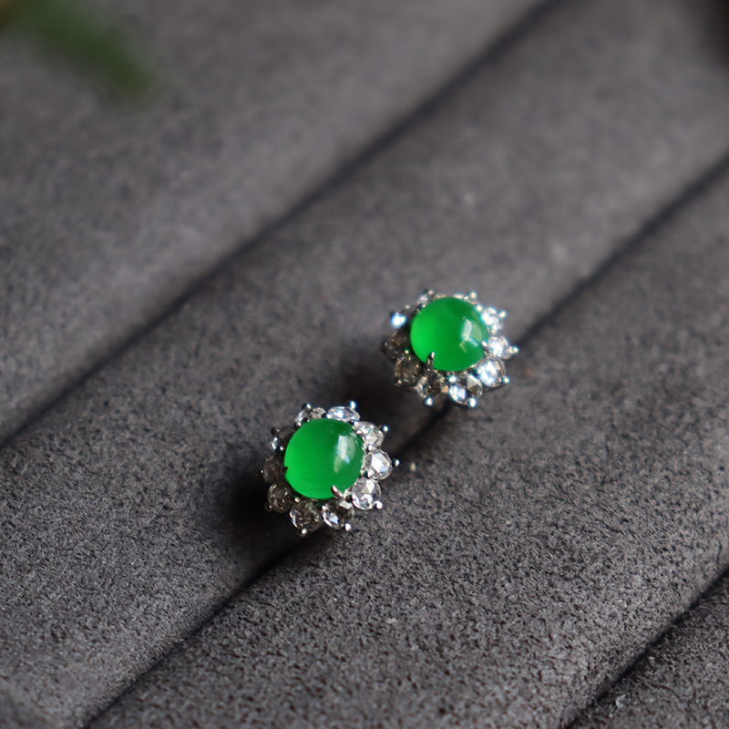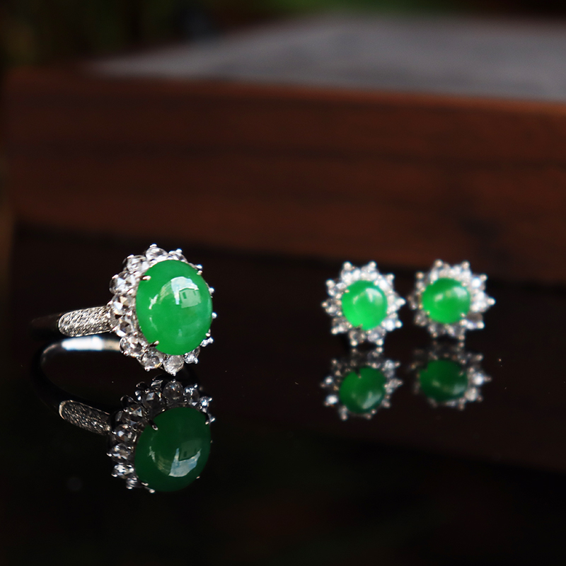 • 18k冰种翠绿翡翠套装
