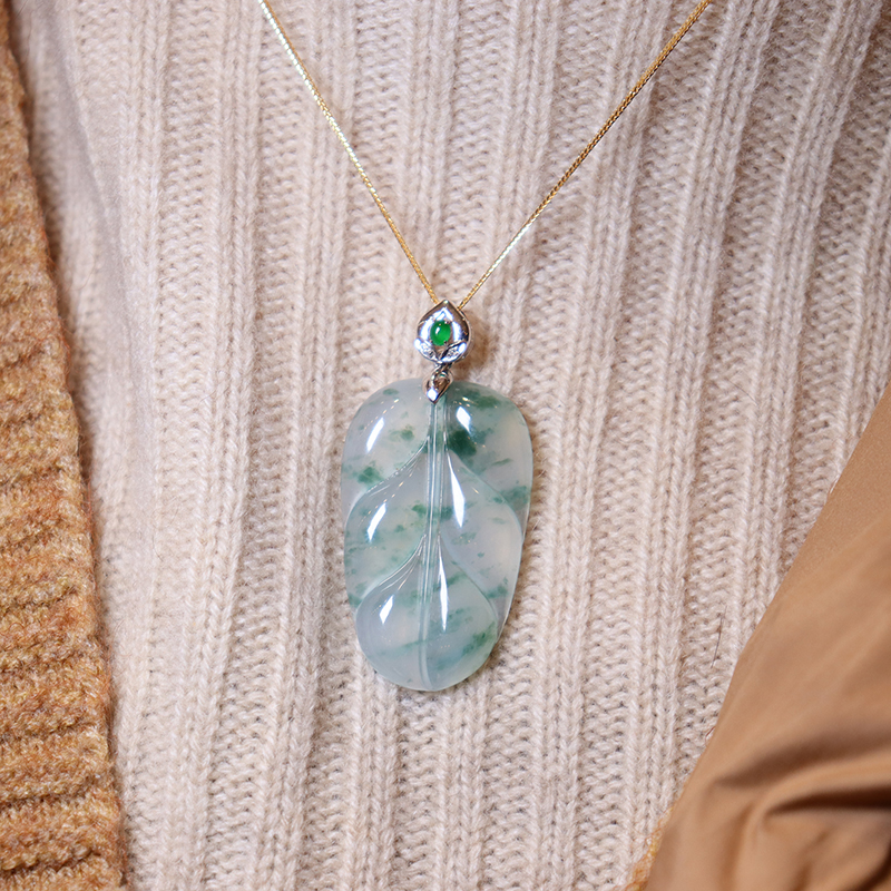 • 18k冰种飘花金枝玉叶吊坠