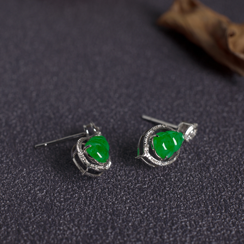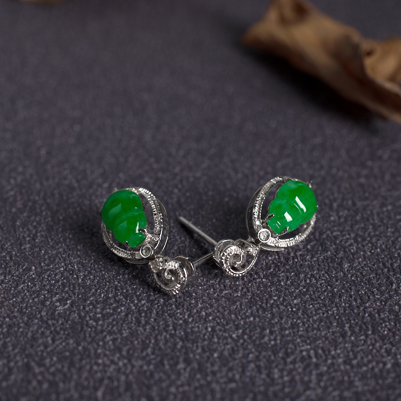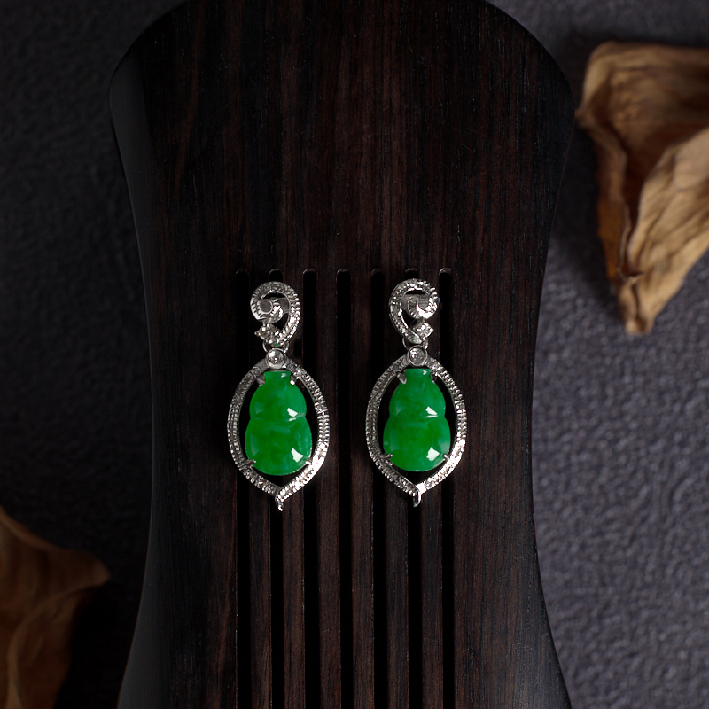 • [名  称] 18K糯冰种阳绿翡翠葫芦耳坠