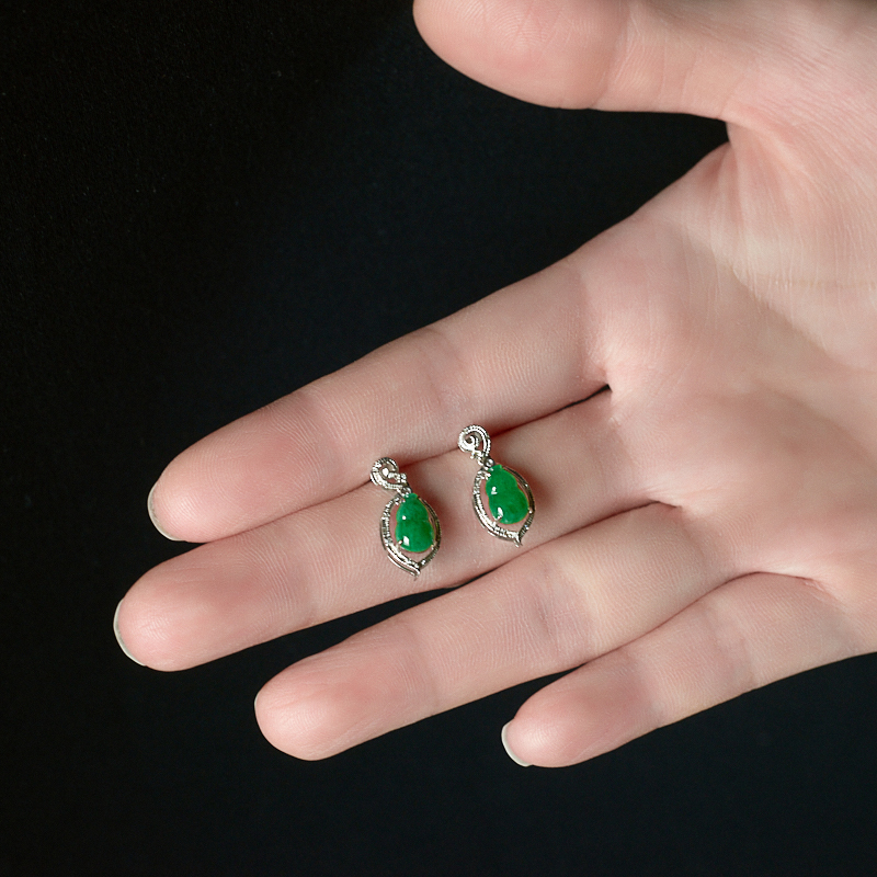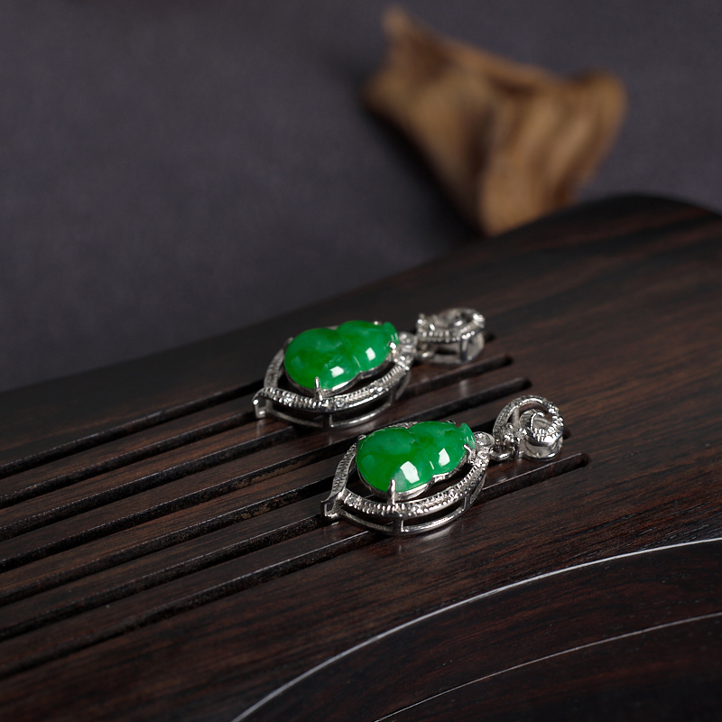 • 18K糯冰种阳绿翡翠葫芦耳坠