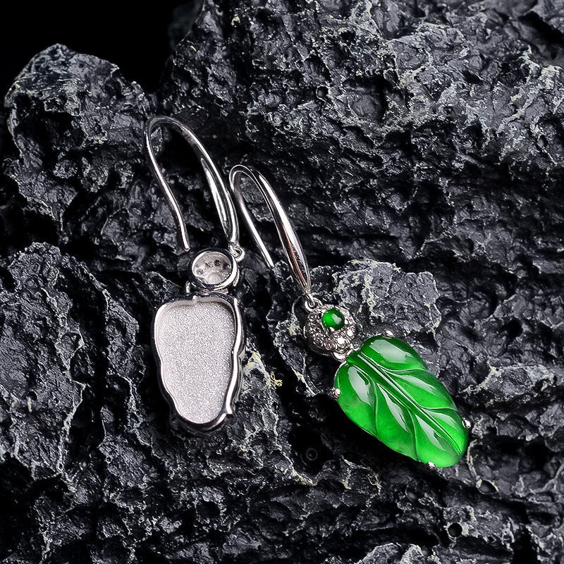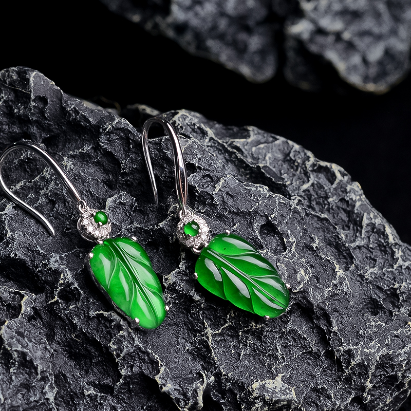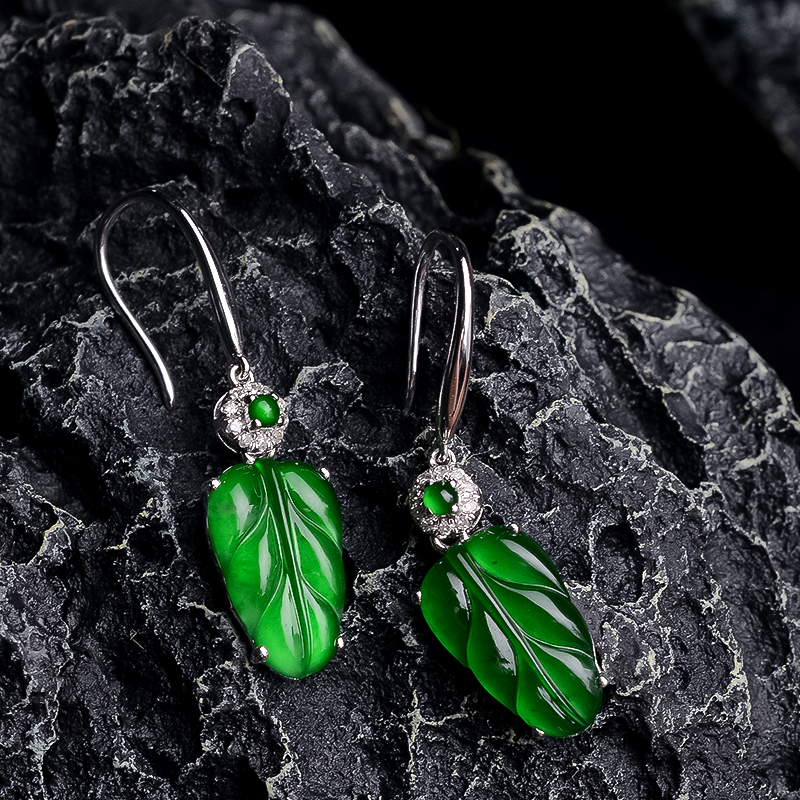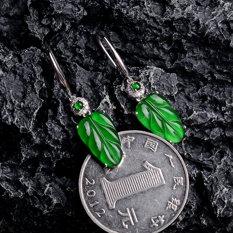 • 18k冰种翠绿翡翠金枝玉叶耳坠