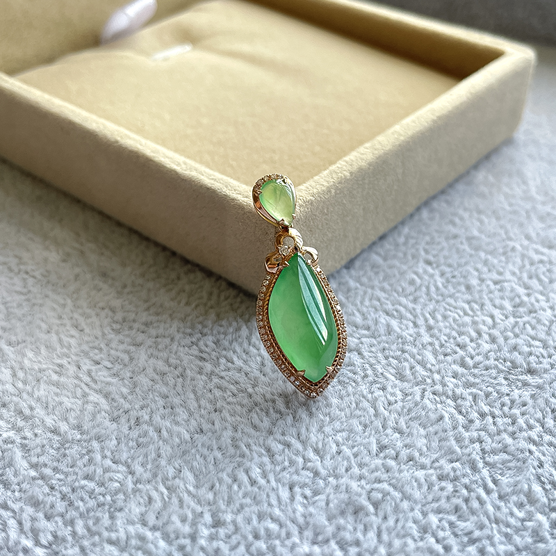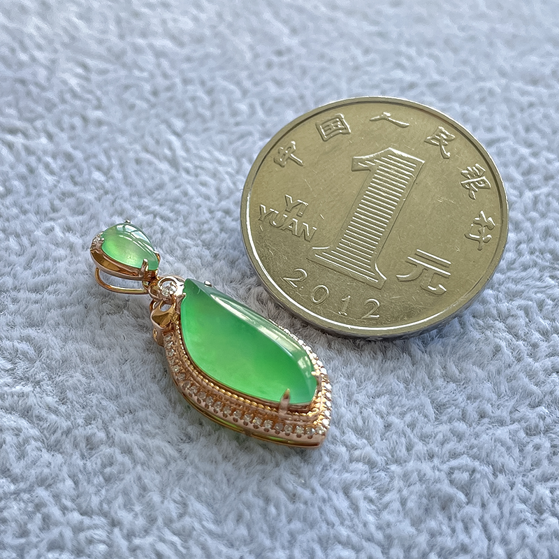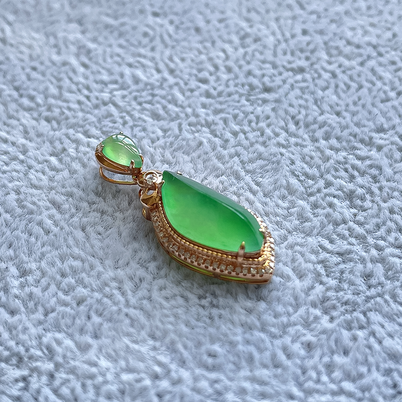 • [名  称] 18k冰种甜绿翡翠随形吊坠