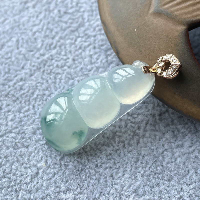 • [名  称] 18k冰种飘花翡翠连中三元吊坠