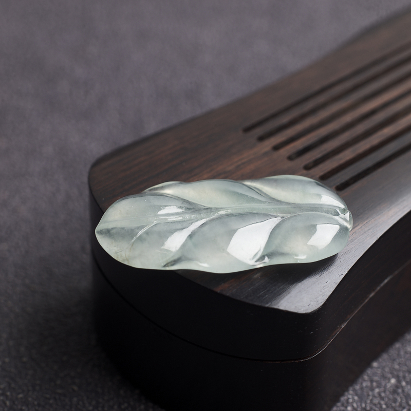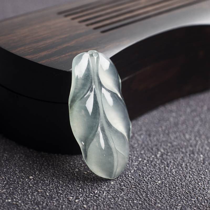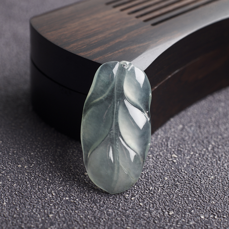 • 冰种浅绿翡翠叶子吊坠