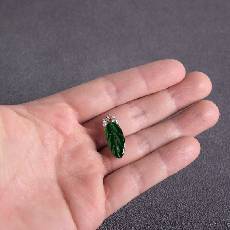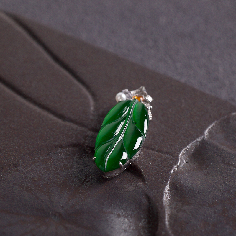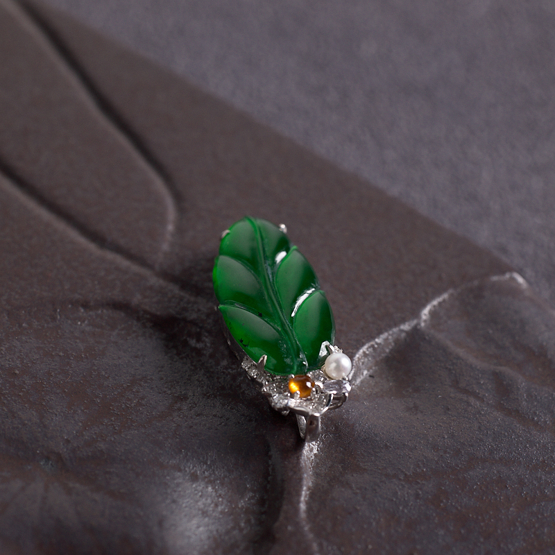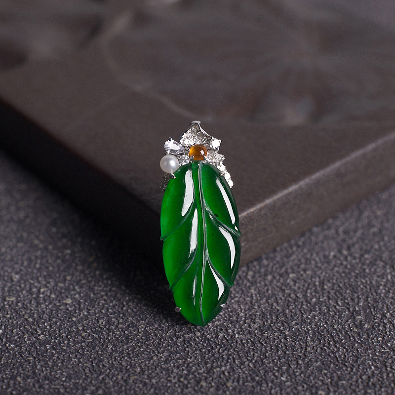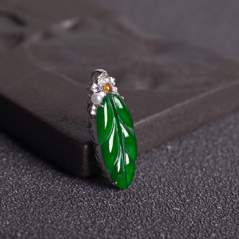 • 18K冰种翠绿翡翠金枝玉叶吊坠
