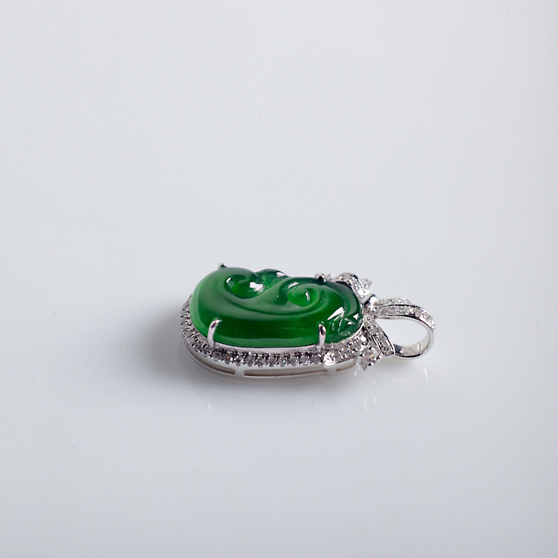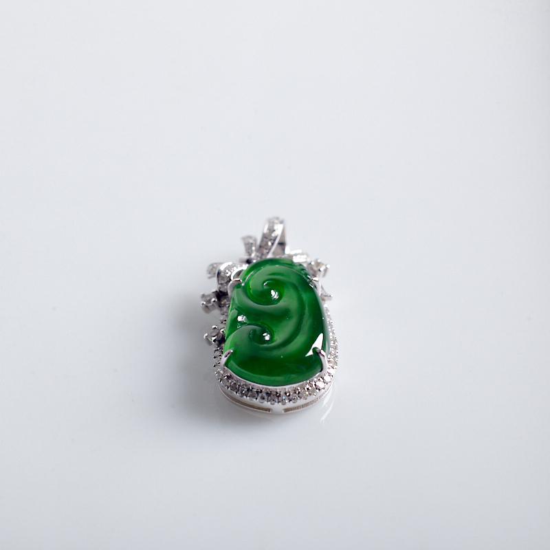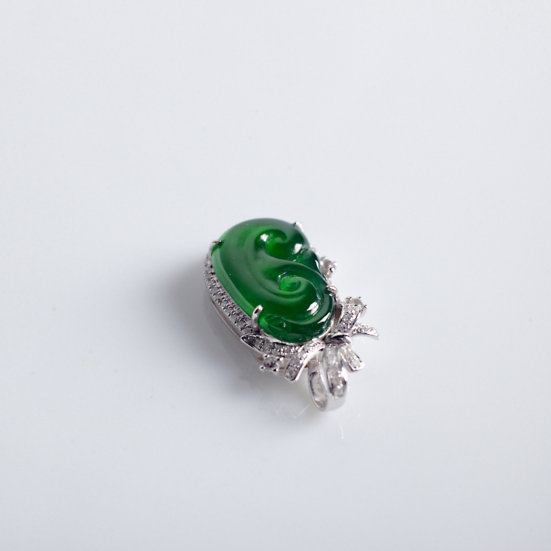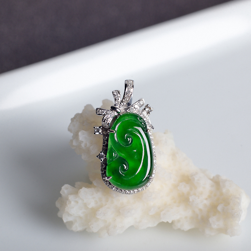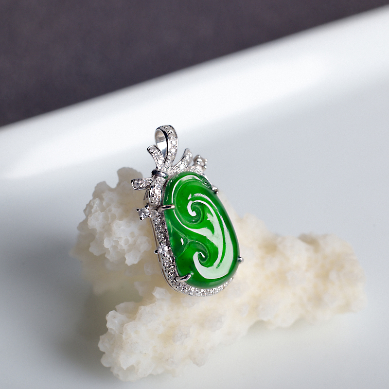 • [名  称] 18K冰种翠绿翡翠如意吊坠