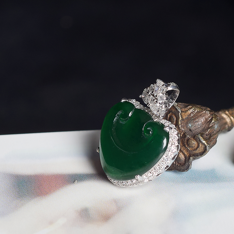• [名  称] 18K冰种翠绿翡翠如意吊坠