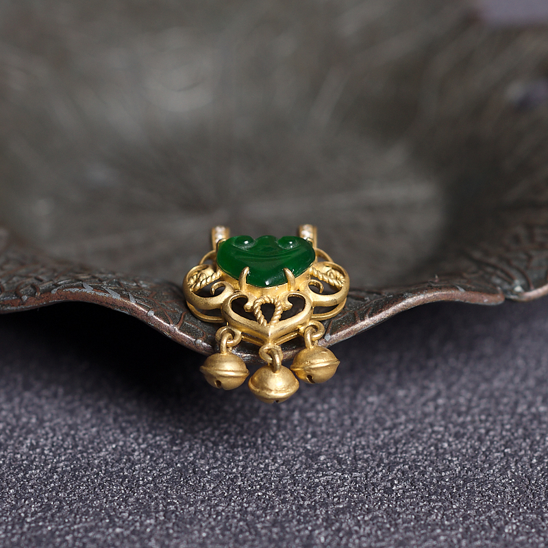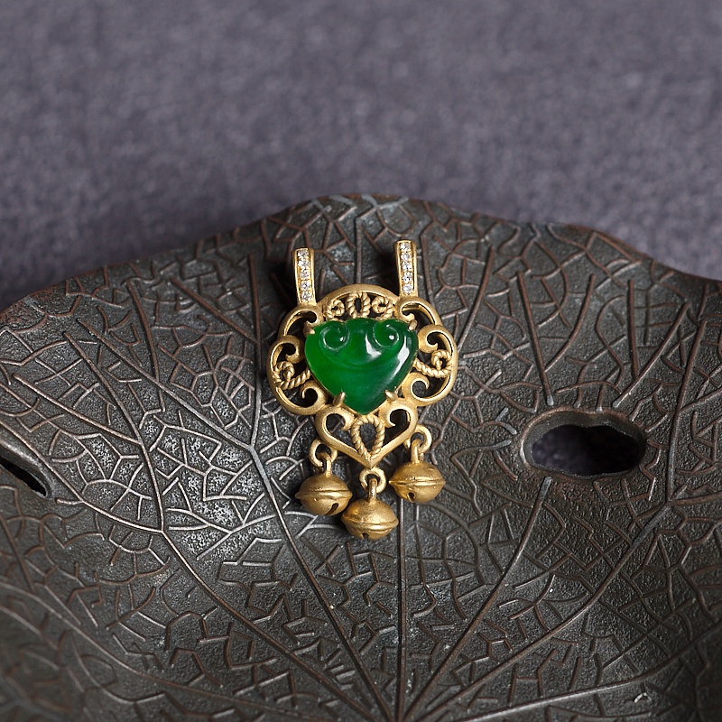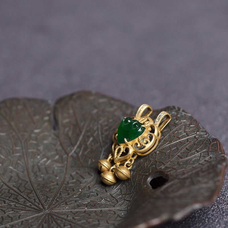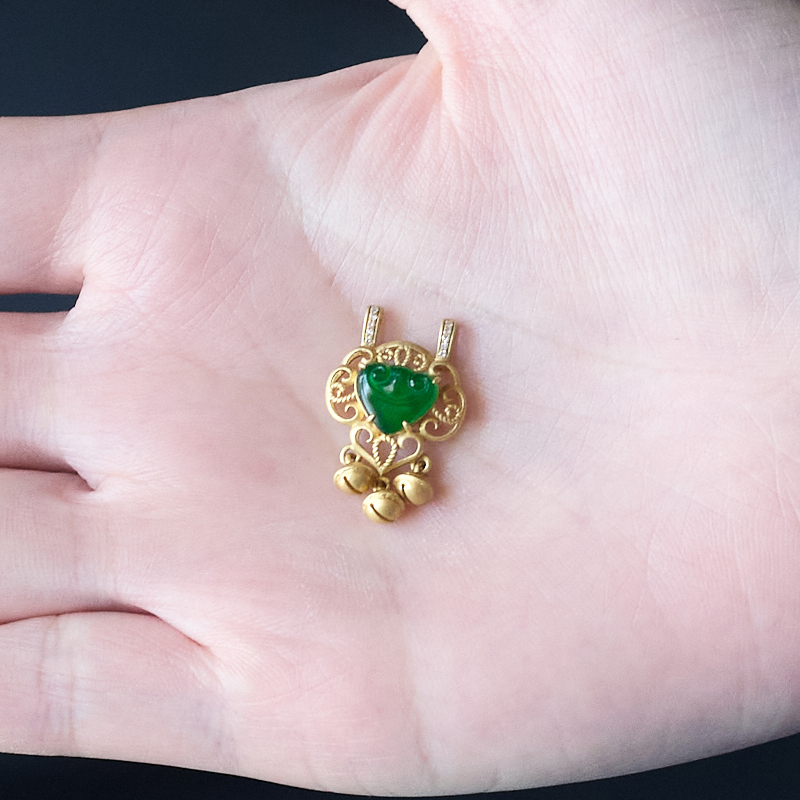 • 18K冰种翠绿翡翠如意吊坠