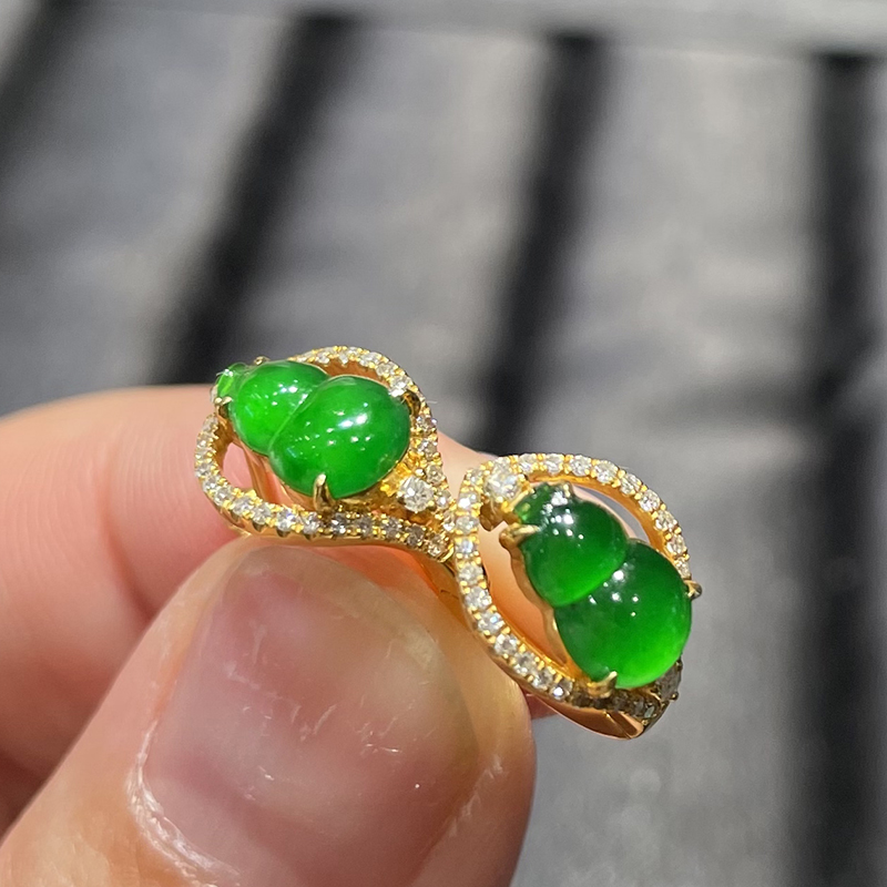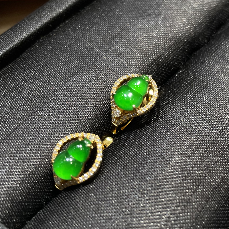 • [名  称] 18k冰种翠绿翡翠葫芦耳扣