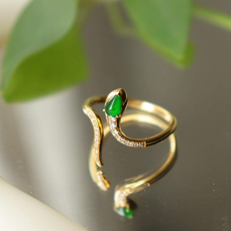 • [名  称] 18k冰种阳绿翡翠蛇戒指