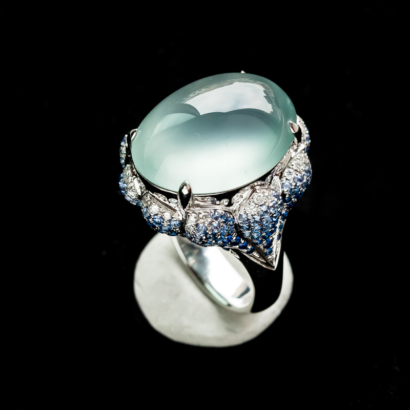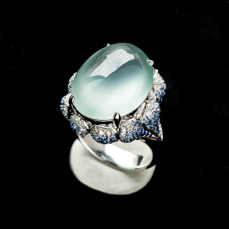 为了让珠宝的价值得到更大程度的体现,每一个作品都是根据料子本身做专业的设计,让每件作品都有灵魂。设计好以后会根据设计创意做专业的镶嵌或雕刻,确保每个接口都严丝合缝,每一刀都流畅自如