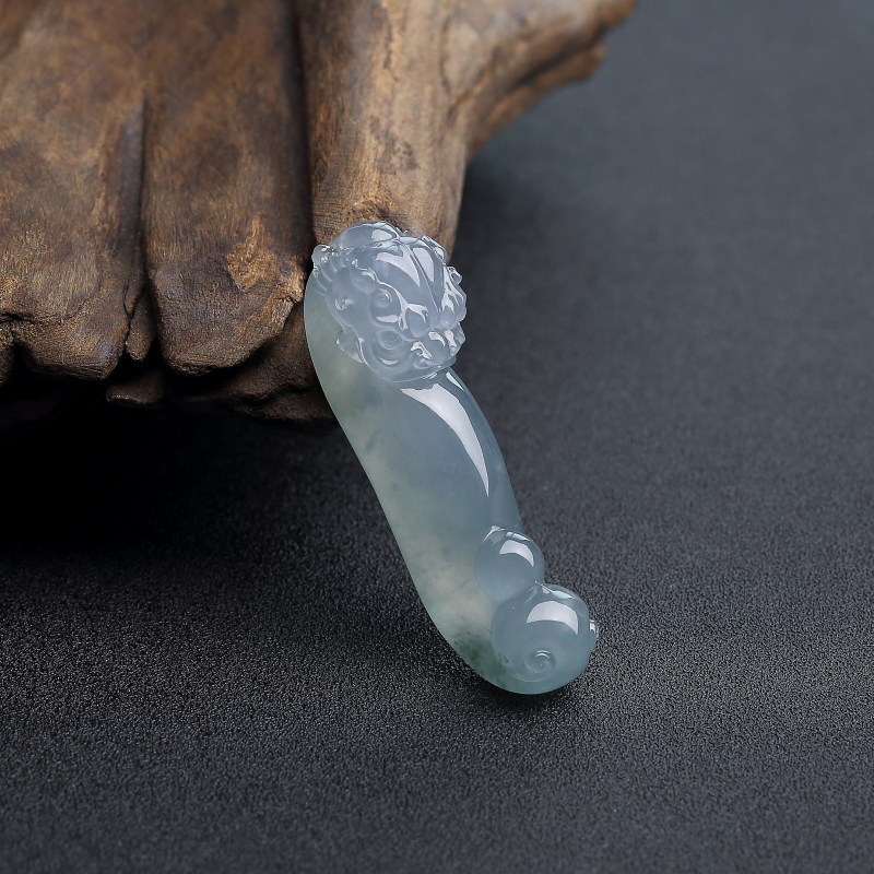 • 糯冰种蓝水翡翠龙头钩吊坠
