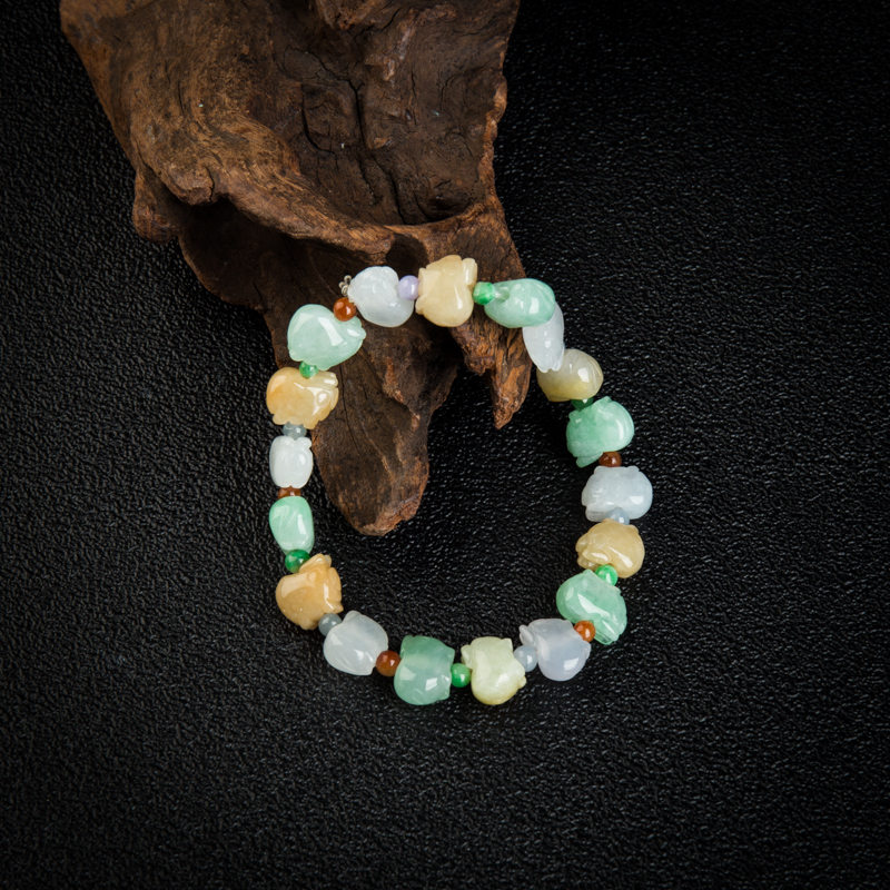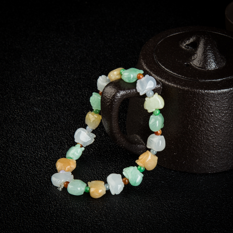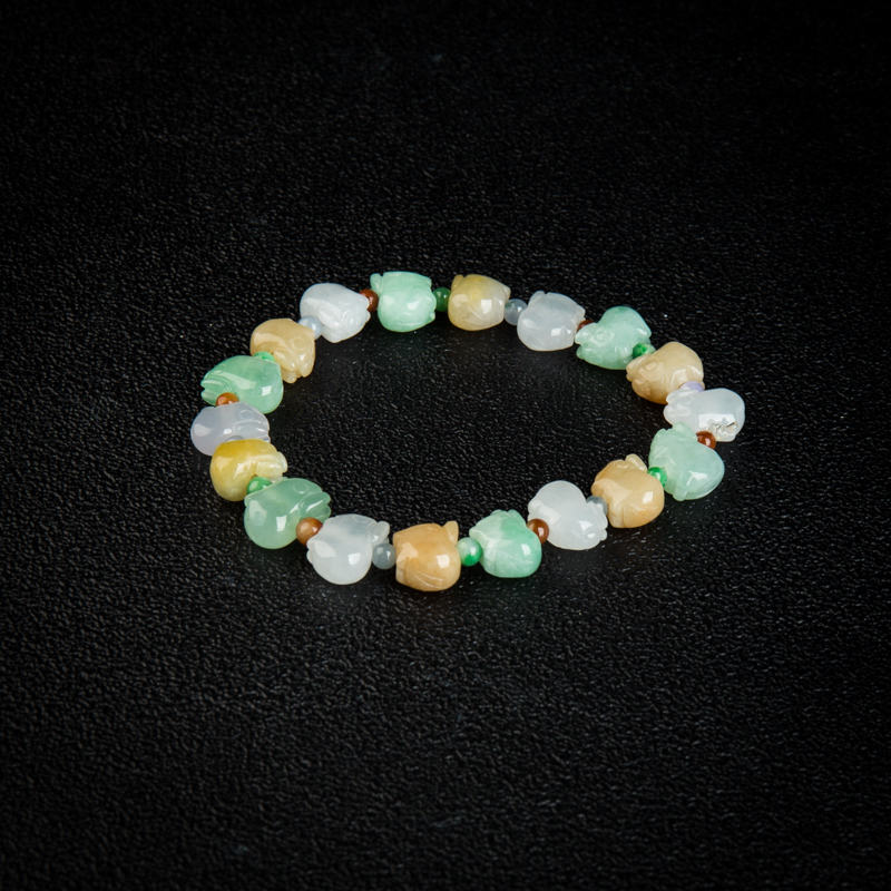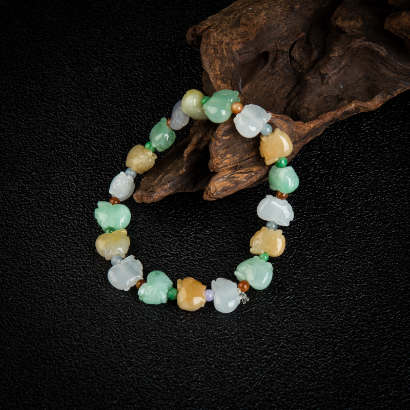 • [名  称] 糯冰种三彩翡翠富贵猪手串