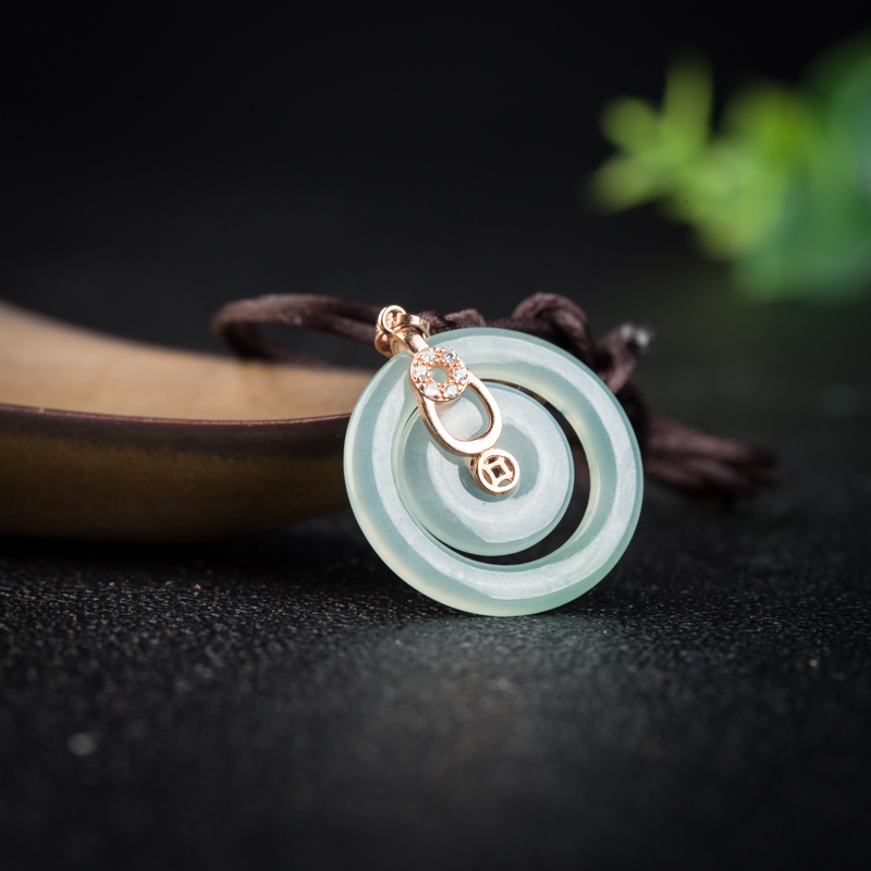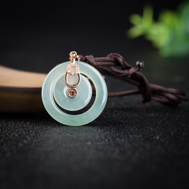 • 银镶糯冰种飘花翡翠子母扣吊坠