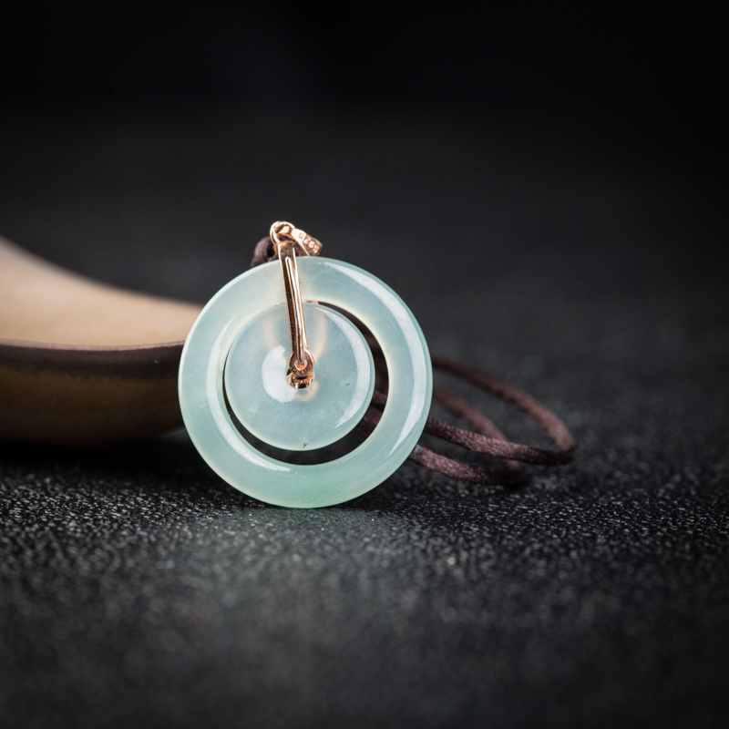 • [名  称] 银镶糯冰种飘花翡翠子母扣吊坠