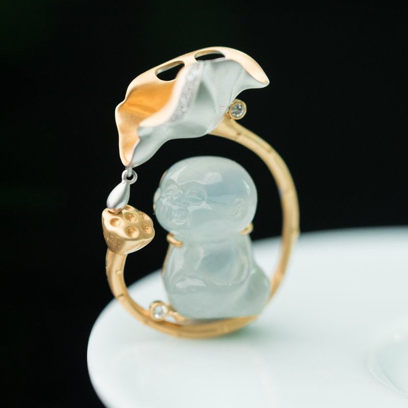 • 18K糯冰种淡晴水翡翠宝宝佛吊坠
