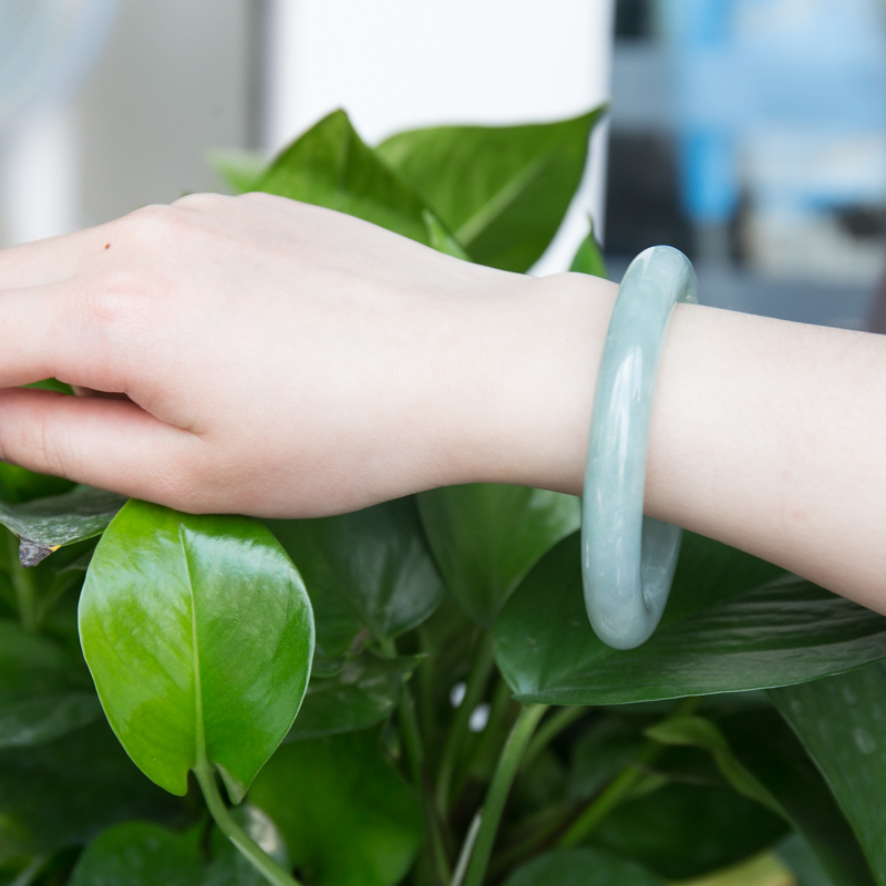 • 56.5mm糯冰种浅绿翡翠圆镯