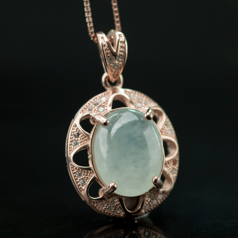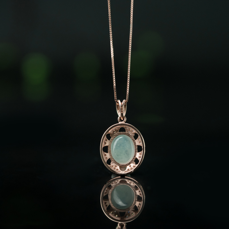 • [名  称] 银镶糯冰种淡晴水翡翠项链