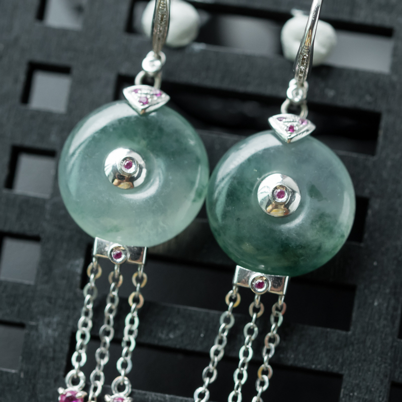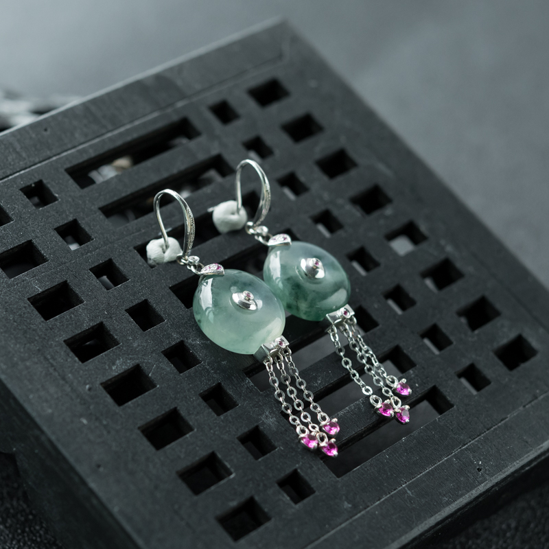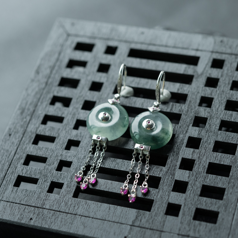 • [名  称] 18K糯冰种飘花翡翠耳坠