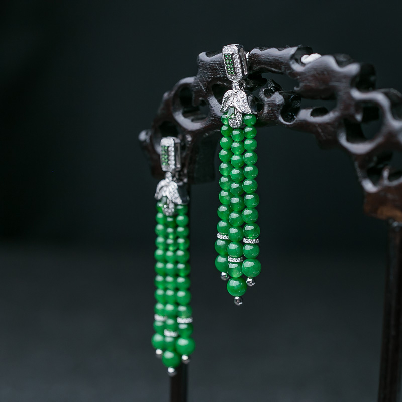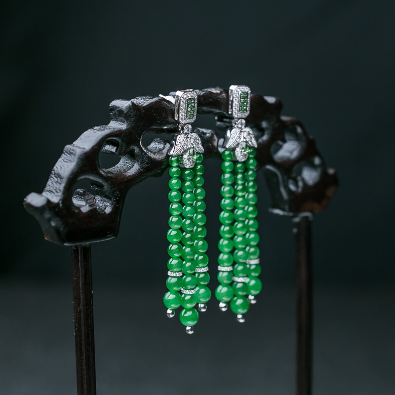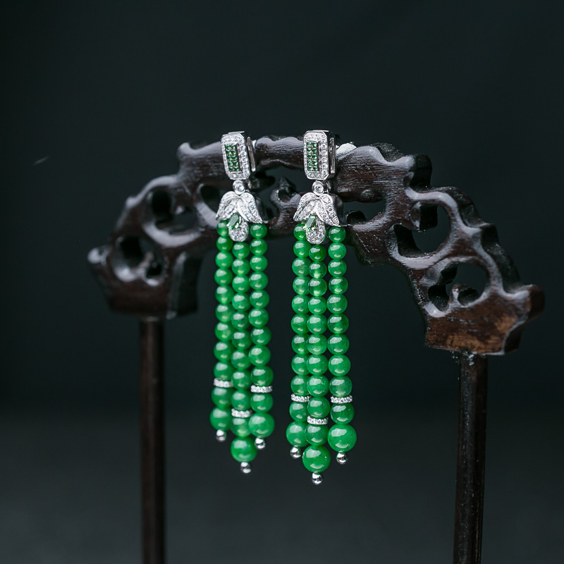 • [名  称] 18K糯冰种翠色翡翠耳坠