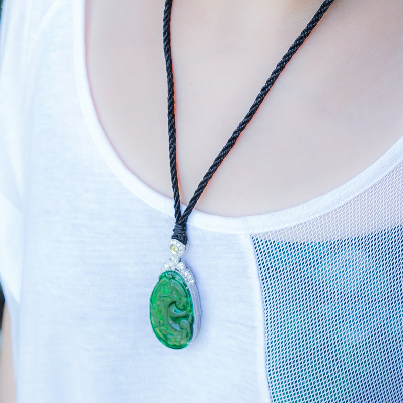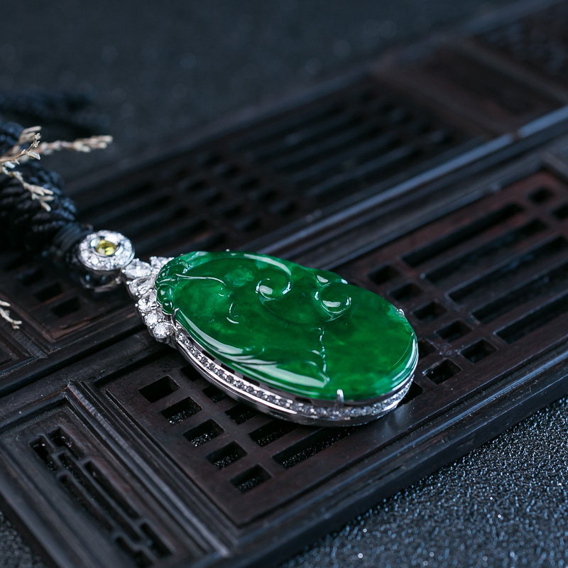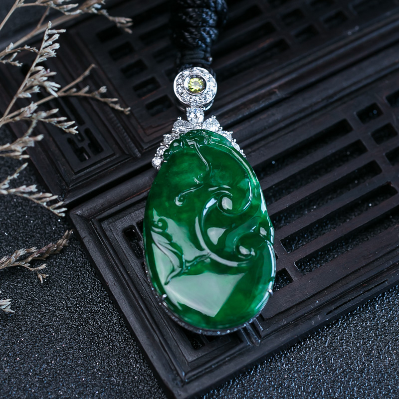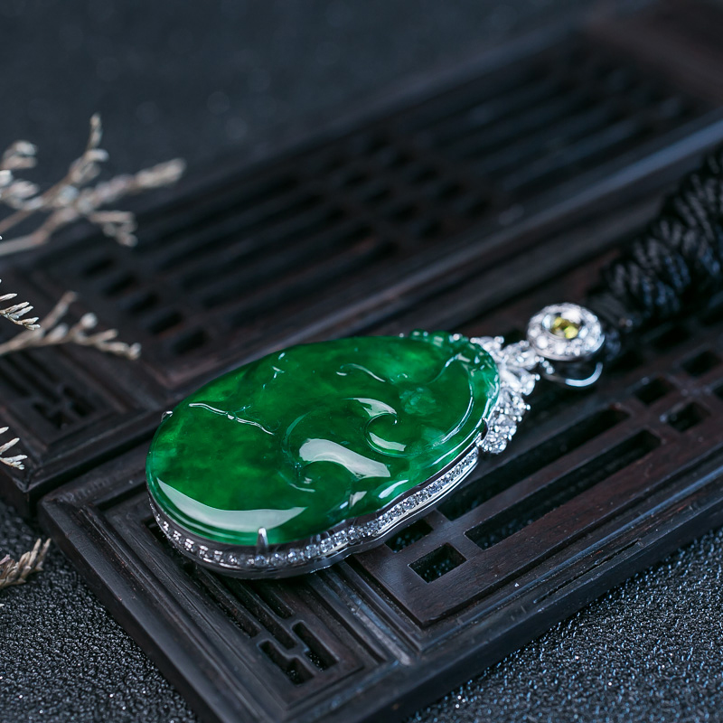 • [名  称] 18K糯冰种深绿翡翠如意吊坠