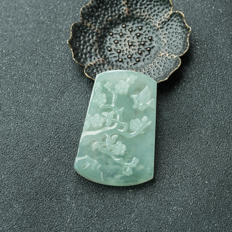 • 糯冰种晴水翡翠喜上眉梢吊坠