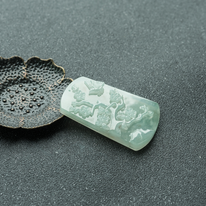 • [名  称] 糯冰种晴水翡翠喜上眉梢吊坠