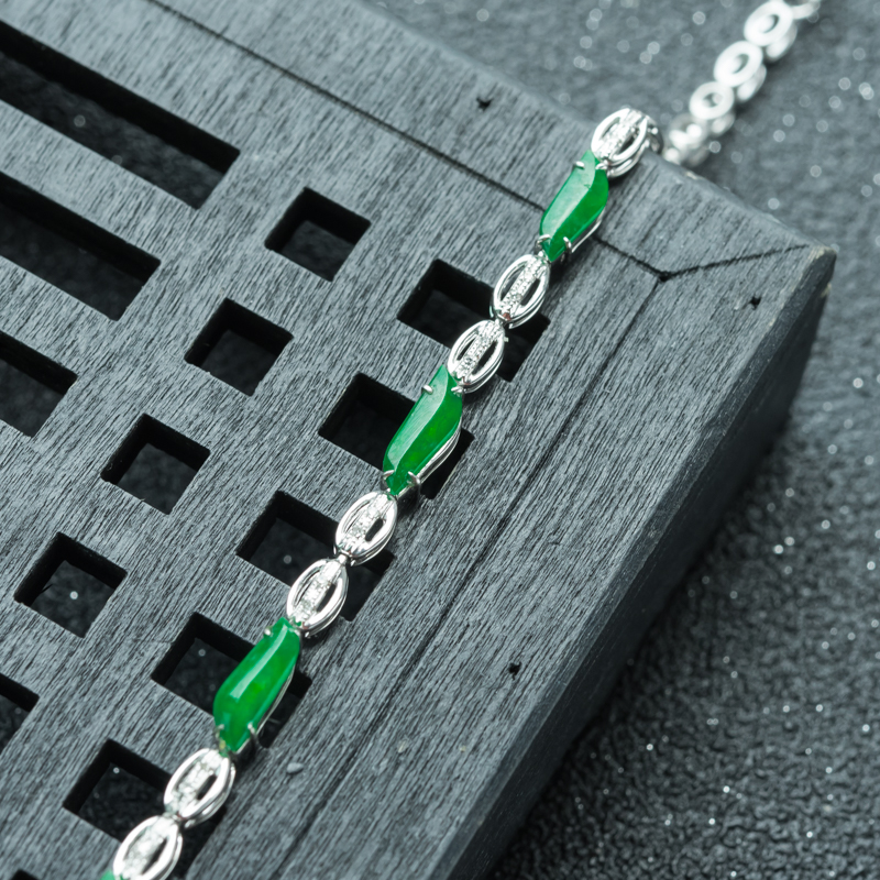 • [名  称] 18K糯冰种阳绿翡翠手链