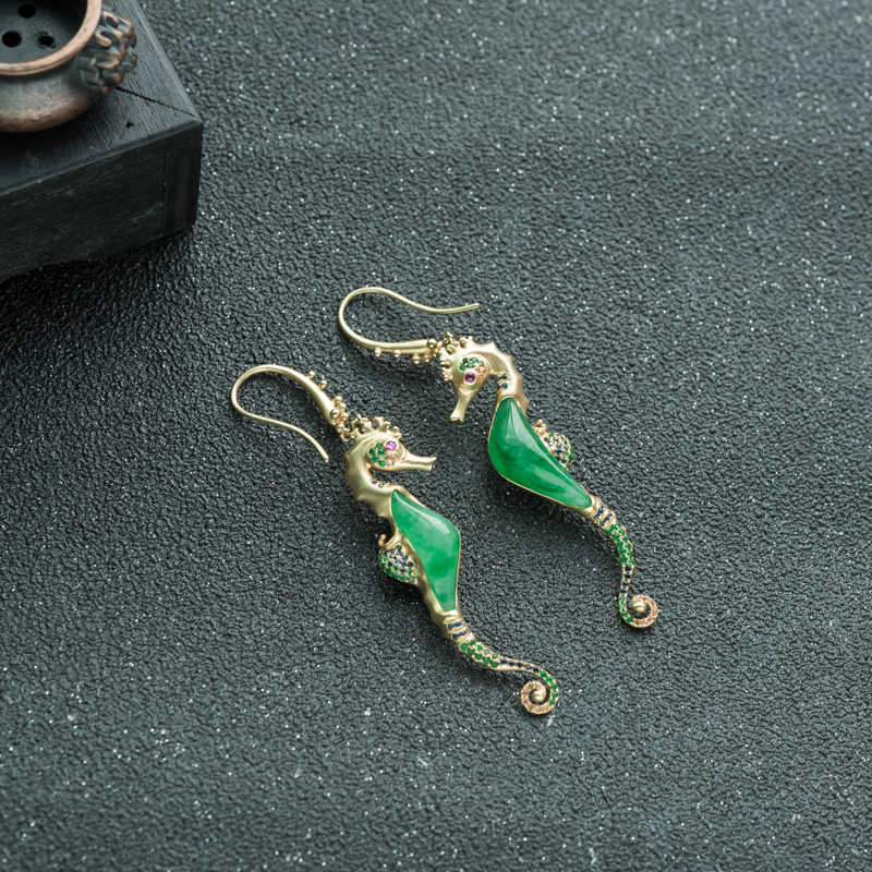 • [名  称] 18K糯冰种飘翠翡翠海马耳坠