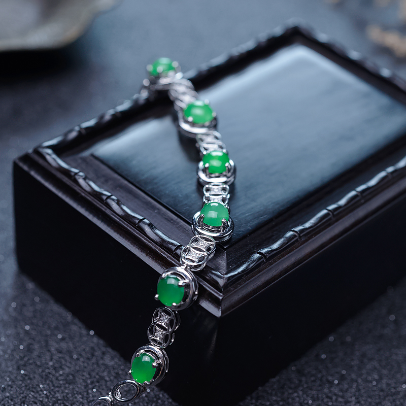 • [名  称] 18K糯冰种阳绿翡翠手链