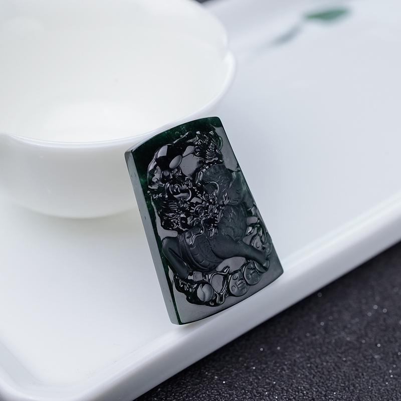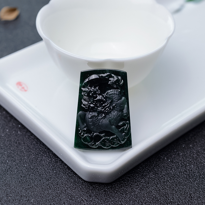 • [名  称] 糯冰种墨翠麒麟吊坠